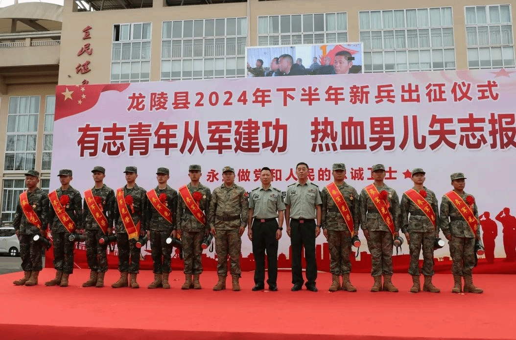 在龙陵县2024年下半年新兵入伍出征仪式现场,新兵们身着崭新的军装,胸戴大红花,身姿挺拔,眼神中充满着坚定与自豪,他们将奔赴祖国的四面八方,踏上保家卫国的新征程。新兵们纷纷表达了自己对军旅生活的向往和报效祖国的决心,大家表示将牢记家乡人民的嘱托,以实际行动践行军人的使命和担当,为实现强国梦、强军梦贡献自己的力量。