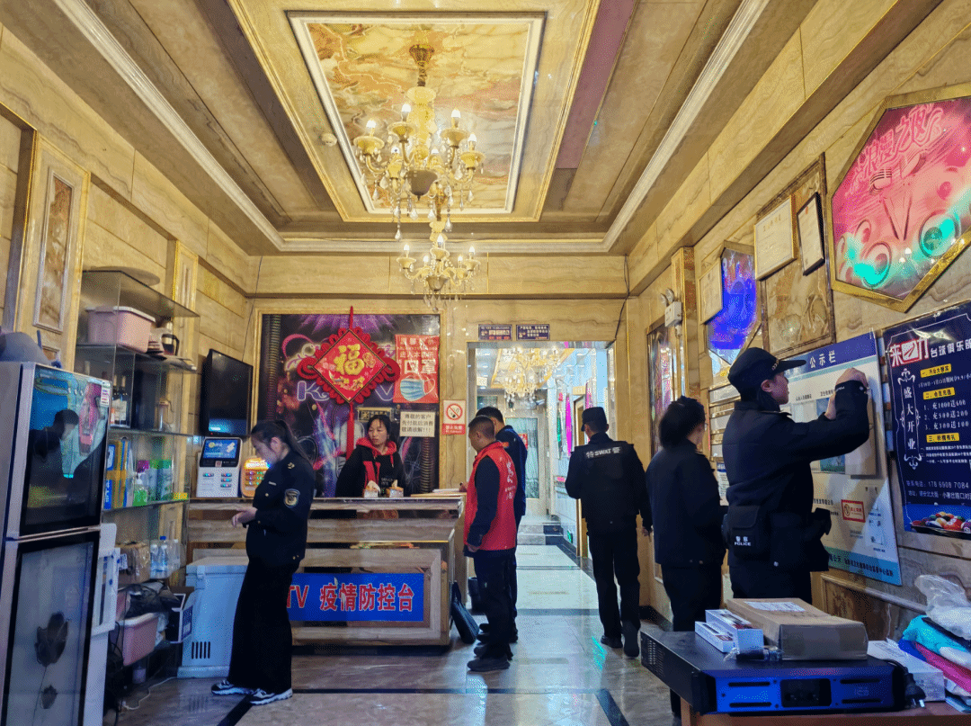 夜幕降临,寒风中涌动着一股守护的力量。此次专项行动前,各部门提前召开筹备会议,明确分工,细化任务。行动伊始,30余人队伍迅速集合,身着整齐制服,携带执法设备,他们的身影在夜色中显得格外坚定。各部门“兵分三路”开展行动,对辖区内宾馆酒店、烧烤摊(店)、足疗按摩店、台球室、KTV等重点场所开展联合执法检查,整个行动持续到深夜,通过各部门的紧密配合,对辖区内众多重点场所进行了全面细致的检查。