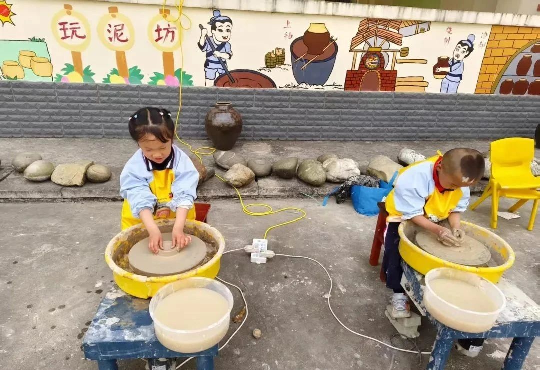 活动首日,孩子们在老师的陪同下走进土陶工作坊。匠人现场演示拉坯、塑形、雕刻等传统技艺,一团团陶泥在匠人手中化作花瓶、茶盏,引得孩子们连连惊叹。