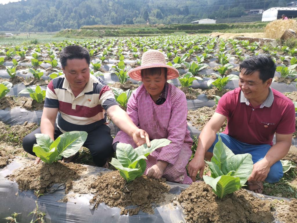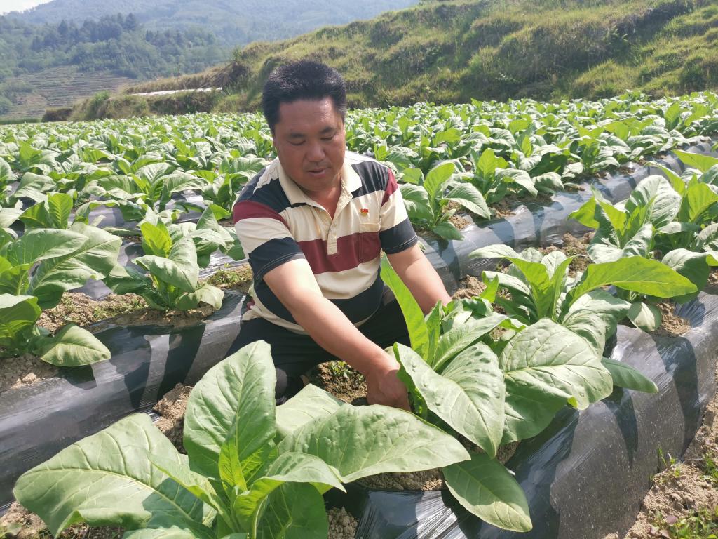同时,为了带动群众积极发展好烤烟产业,实现稳步脱贫致富,杨绍凡充分发挥好自己的党员先锋模范作用,示范带动农户种植好烤烟。2019年,他个人带头承包种植烤烟30亩,其中上等烟比例占76.18%,实现总产值15.5万元,实实在在打了一场漂亮的烤烟胜利仗。今年,他继续承包种植烤烟30亩,现在烤烟长势正好,丰收在望。“现在种烟条件好,不仅政府扶持政策好,而且技术服务到田间地头,只要坚持科学种烟,就能种出好烟,就能卖个好价钱,烟农就能实现脱贫致富。”杨绍凡在烟田里一边查看烤烟长势一边信心满满的说道。