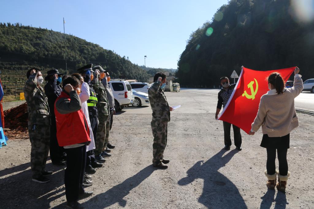 “我宣誓,我志愿加入中国共产党,拥护党的纲领,遵守党的章程……”,龙新乡黄草坝岔路健康监测点临时党支部在党旗下重温入党誓词,句句铿锵,字字有力。哪里有艰险,哪里就有共产党员的身影,就有共产党员的奉献。危难时刻,龙新乡党员干部充分发挥党组织优势,彰显坚韧品格,团结一心,凝心聚力,形成强大合力,共同抗击疫情。