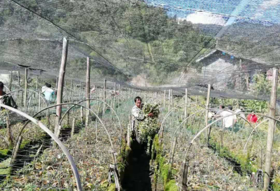 石斛人家互助有爱心。石斛采收工作正在如火如荼的进行,荆竹坪村河底场石斛种植户韩茂强家种植的5亩多石斛眼看就要采收了,但是由于妻子患大病,全家忙于给妻子治病,无力进行采收。荆竹坪村河底场党支部11月党员活动日这一天,全体党员及部分群众主动到韩茂宏家石斛地帮助采收石斛,彰显了石斛人家互帮互助的醇厚感情。