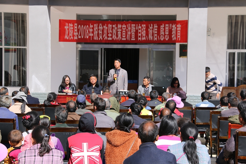 为进一步提高党员群众对脱贫攻坚政策的知晓度,增强党员群众“自强、诚信、感恩”意识,助力全县打赢脱贫攻坚战,近日,龙陵县脱贫攻坚政策宣讲暨“自强、诚信、感恩”教育第二宣讲组来到龙新乡各村(社区)开展脱贫攻坚政策宣讲暨“自强、诚信、感恩”教育,龙新乡各村(社区)组织了村(社区)“两委”成员、监委会主任、驻村扶贫工作队员、党支部书记、小组长、党员代表、农村居民每户一个“明白人”现场聆听宣讲。