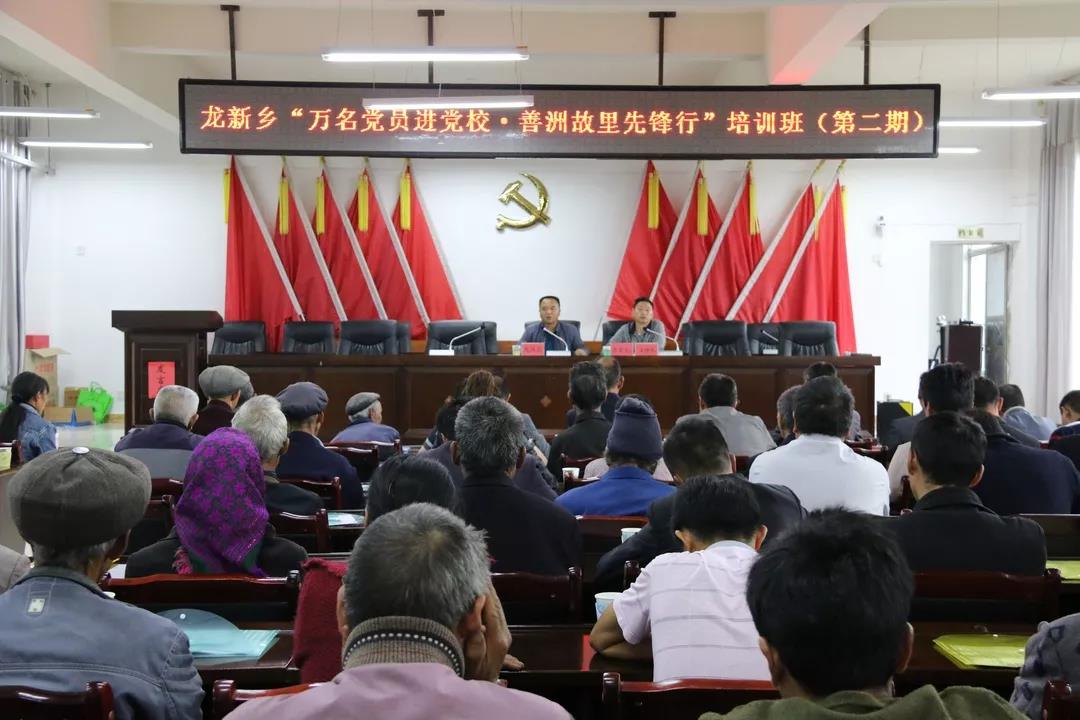 此次培训主要围绕“党章、党的十九大精神、党纪党规”等内容开展,授课的人员有县委党校讲师及本乡领导干部。在开班仪式上乡党委书记赵胜学以《秉承初心方始终 继往开来砺前行》为题,结合龙新乡实际情况对培训的学员做动员讲话。接着乡党委副书记廖孝发结合组织工作给学员讲解新党章,乡纪委书记李希助结合反腐倡廉工作给学员讲解新时代党纪党规,乡宣传委员杨文华结合宣传工作给学员培训习近平新时代中国特色社会主义思想及党的十九大精神,县委党校讲师杨恩彪结合多年授课经验深入讲解乡村振兴战略,茄子山村党总支书记苏会美结合丰富的基层工作经验和学员分享了党员如何在脱贫攻坚中发挥先锋模范作用,乡司法所所长赧昌炳结合工作实践给学员讲解村“两委”换届法律法规知识......