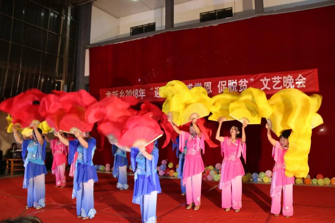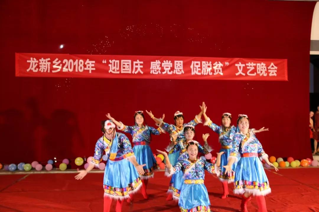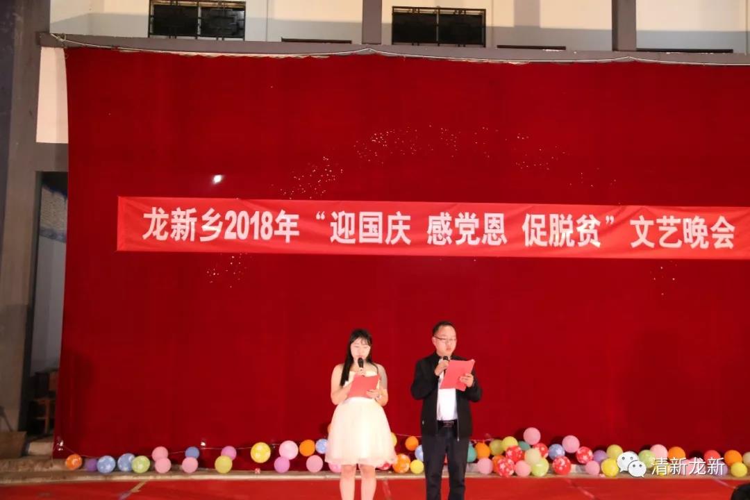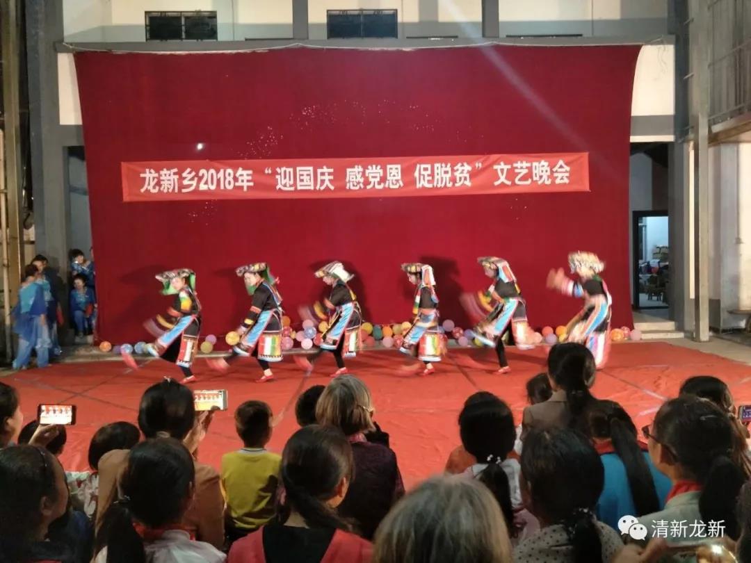 晚会开始前,龙新乡宣传委员和蚌渺社区党总支书记为晚会致辞。蚌渺社区农民艺术团用傈僳族舞蹈《刮说亲家麻亲家》拉开晚会序幕,一时间充满浓郁地方色彩的节目好戏连台,五千年龙腾虎跃演不衰的《中国大舞台》,华夏儿女向中国母亲的致敬《今天是你的生日我的中国》,婉约又豪迈的《中国美》,真真切切唱出百姓的心声,观众拍手叫好;经过改编的诗歌《扶贫政策之歌》娓娓道出各类扶贫政策,让百姓明白了“脱贫光荣,争贫可耻”这个道理。