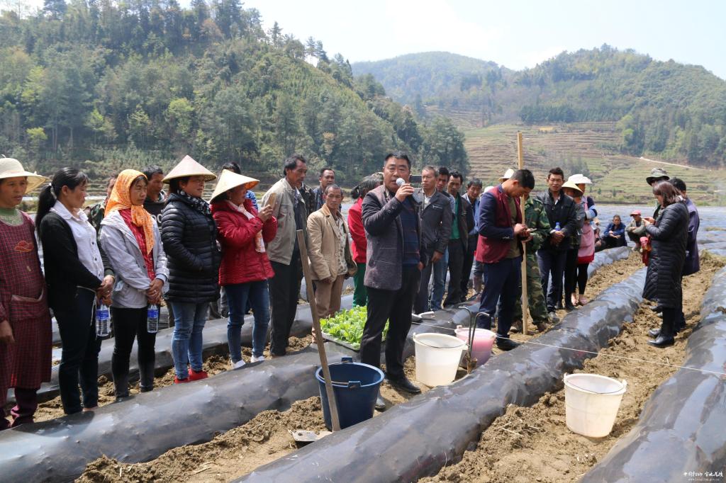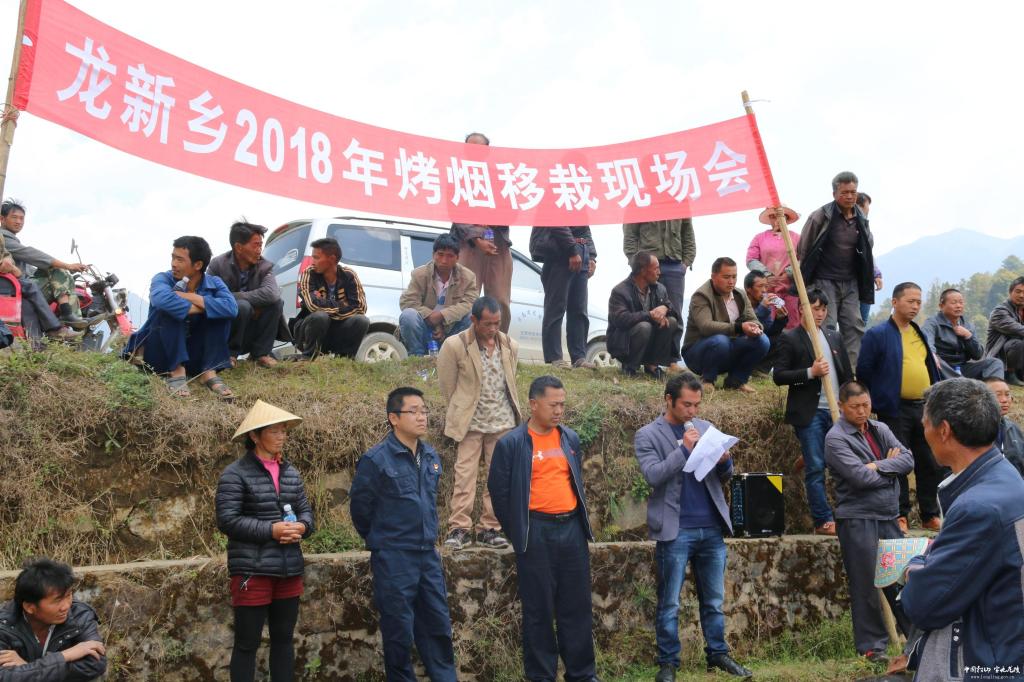 3月28日,龙新乡在雪山村召开烤烟移栽现场会,乡人民政府乡长蒋锡辉,分管领导杨磊,乡烟办全体人员,5个烤烟村(社区)党总支书记、挂村领导、工作队长及部分烟农共50余人参加。