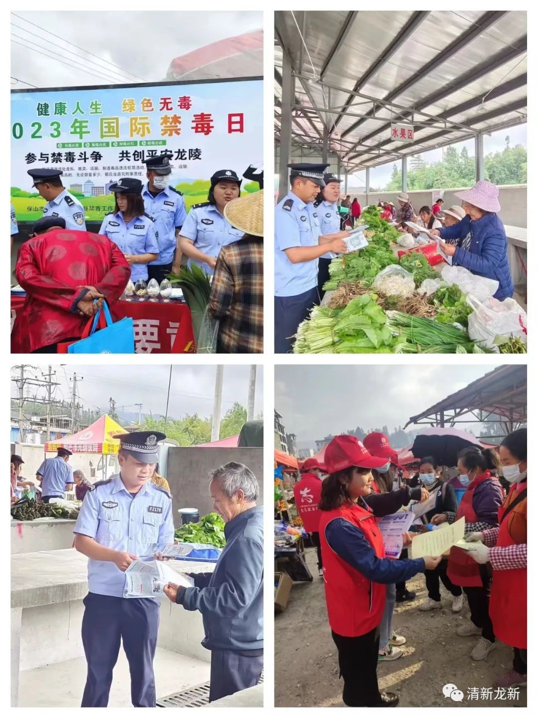 2023年6月26日是第三十六个国际禁毒日,为加大禁毒宣传力度,进一步增强广大人民群众识毒、防毒、拒毒、禁毒的意识和能力,营造全民禁毒浓厚宣传氛围,龙新乡派出所、禁毒办、村(社区)配合龙陵县禁毒工作委员会开展了以“健康人生 绿色无毒”“参与禁毒斗争 共创平安龙陵”为主题的宣传活动。
