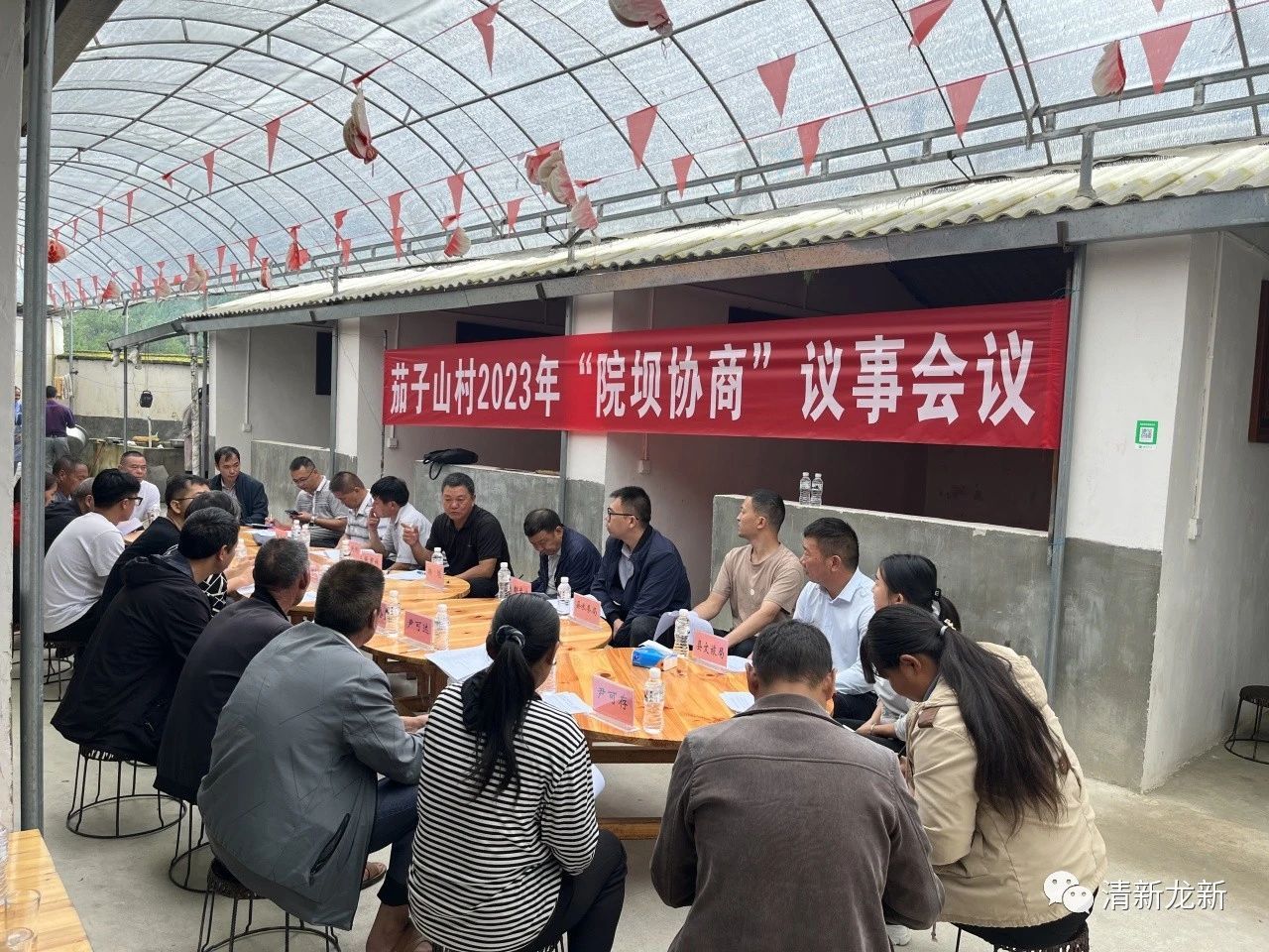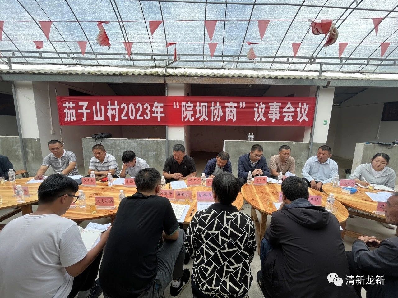8月17日上午,龙新乡茄子山村2023年“院坝协商”议事会议在茄子山村大秧田水库边召开,县政协、县水务局、县文旅局和乡村干部、人大代表、政协委员、群众代表等30余人围坐在一起就“用好现有资源,打通绿水青山转换金山银山通道”开展热烈讨论,用心用情谋划茄子山村乡村振兴新篇章。