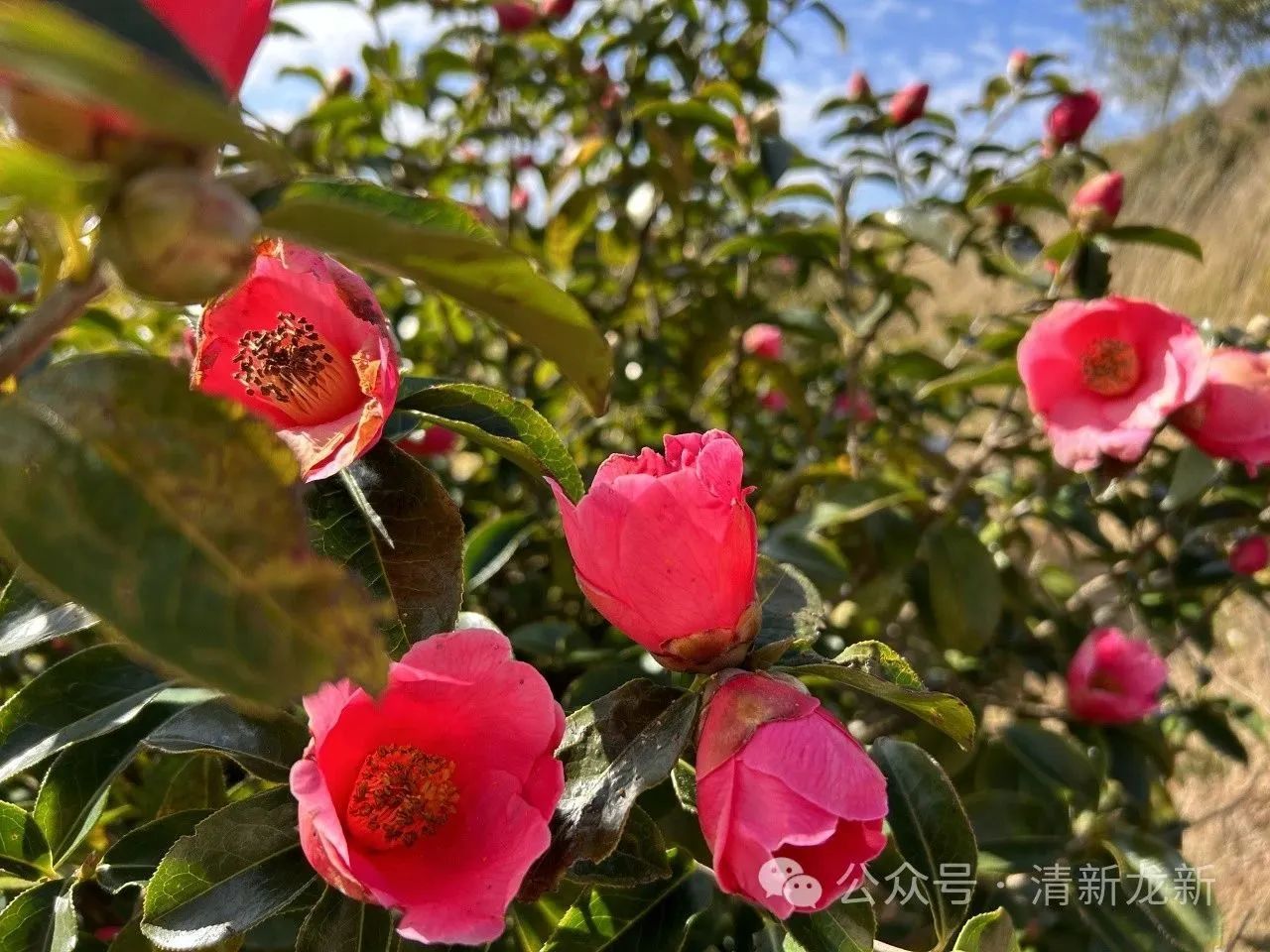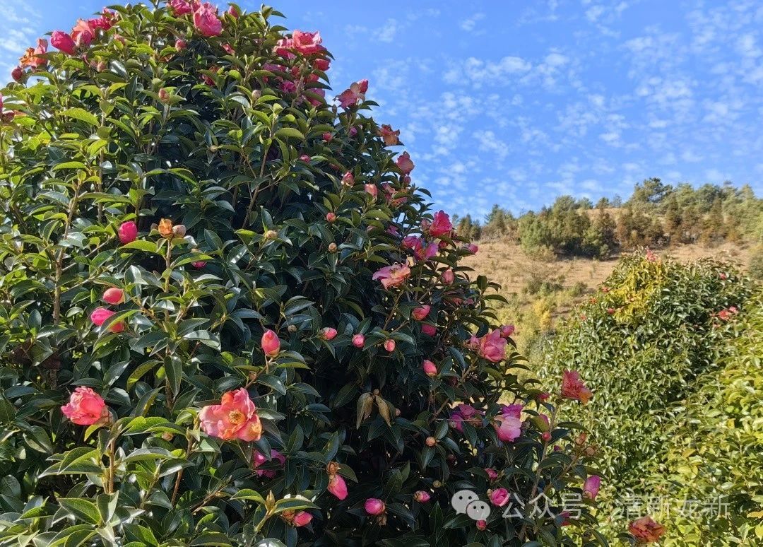 红花油茶,属山茶科,茶树树形较大,对土壤的要求不高,较能耐旱,可在荒山种植,但不宜种植过密,需要充足阳光才能正常开花结果。其花期较长,茶果还可以加工成茶油,是集观赏、经济于一体的植物。