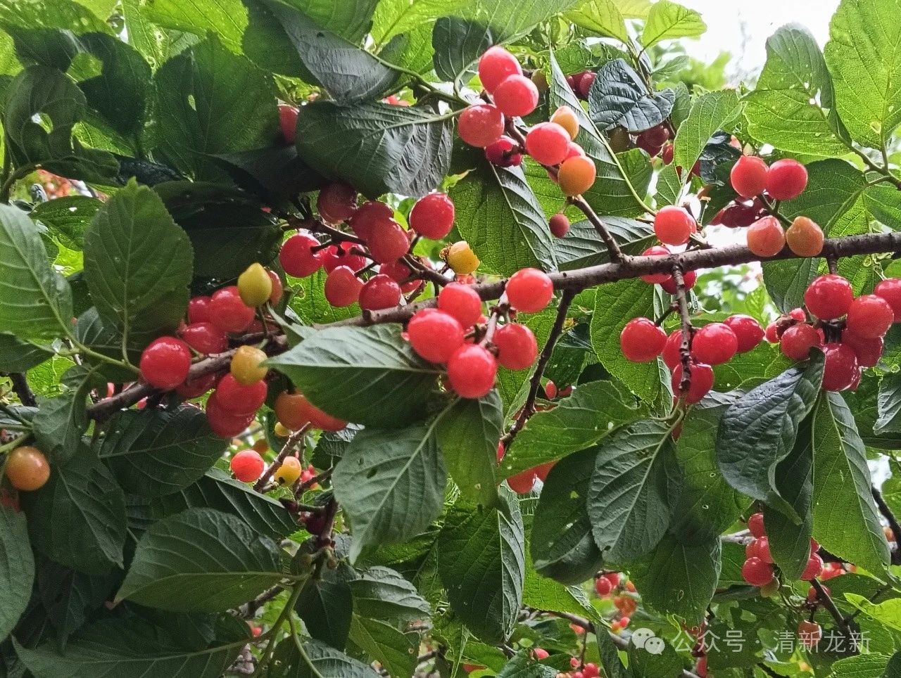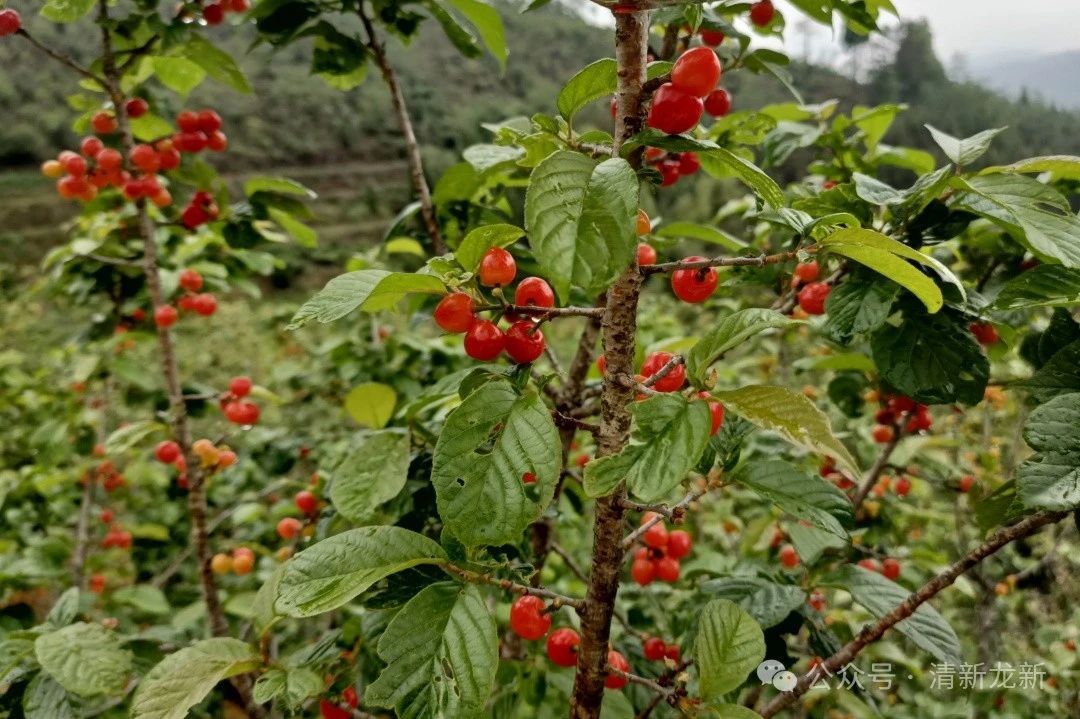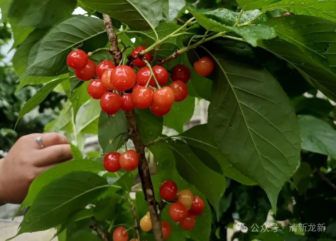 三月赏花,四月食果。四月,龙新迎来了甜蜜的季节,红色果实挂在树梢,格外诱人。在这樱桃成熟的季节,龙新乡黑山村、菜子地村便迎来许多游客前来采摘。一颗颗樱桃缀满枝头,晶莹剔透,红色的果实散发着甜美的芳香,让人忍不住摘下品尝。绿叶下躲藏的樱桃格外娇俏,摘下一颗放入口中,齿间稍一用力,果核便与果肉分离,酸甜口感溢满口中,回味无穷。