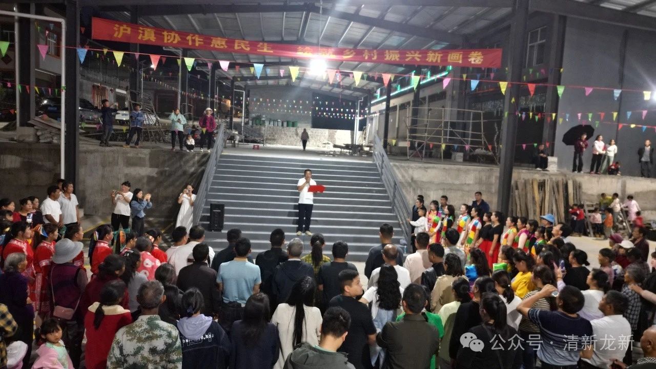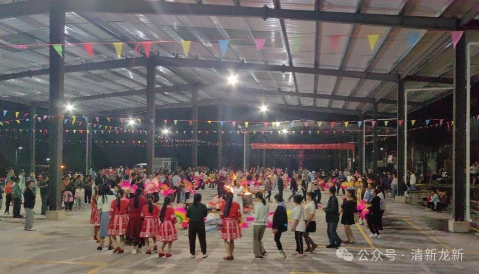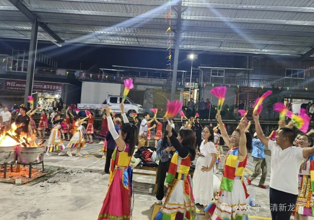 开幕仪式上,龙新村的村民们欢聚一堂,现场燃起了熊熊篝火,大家围着篝火翩翩起舞,鞭炮声、欢笑声,热闹非凡。