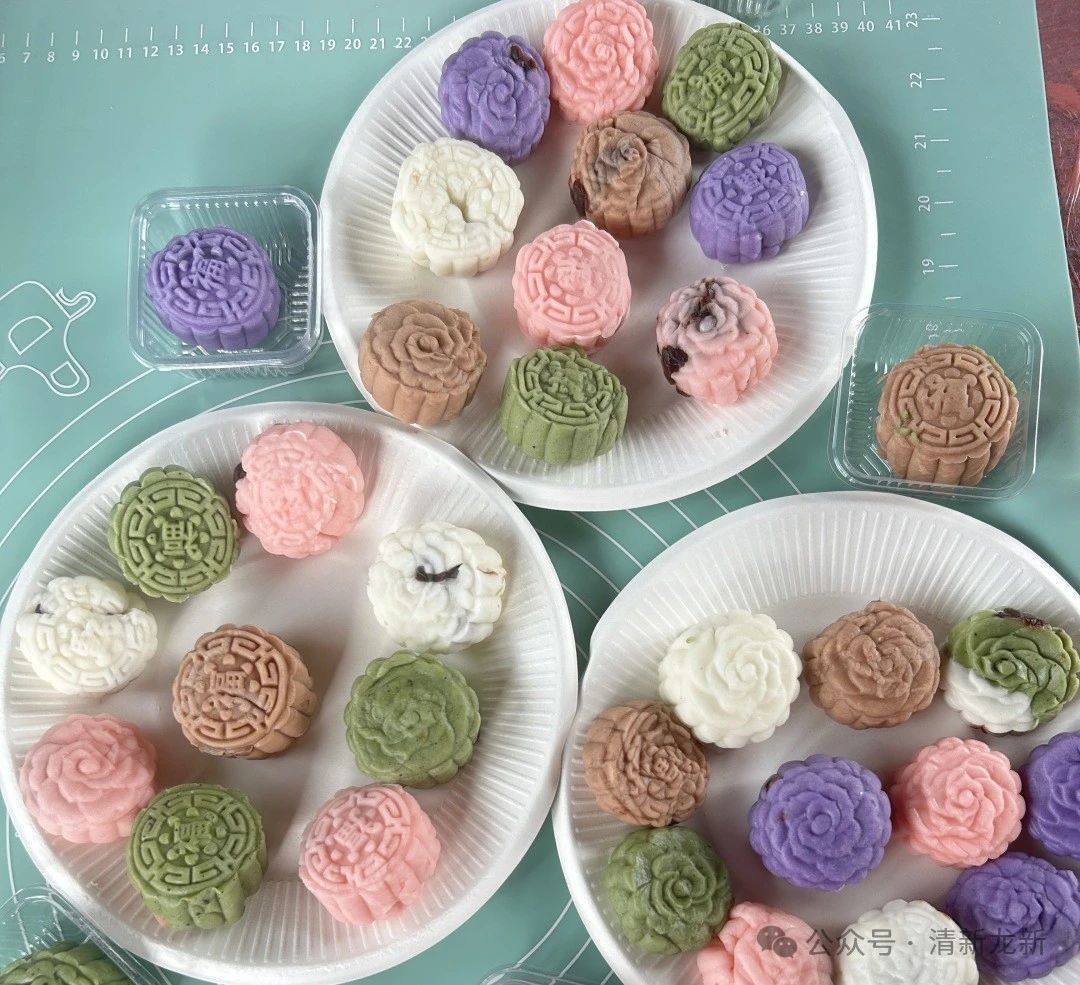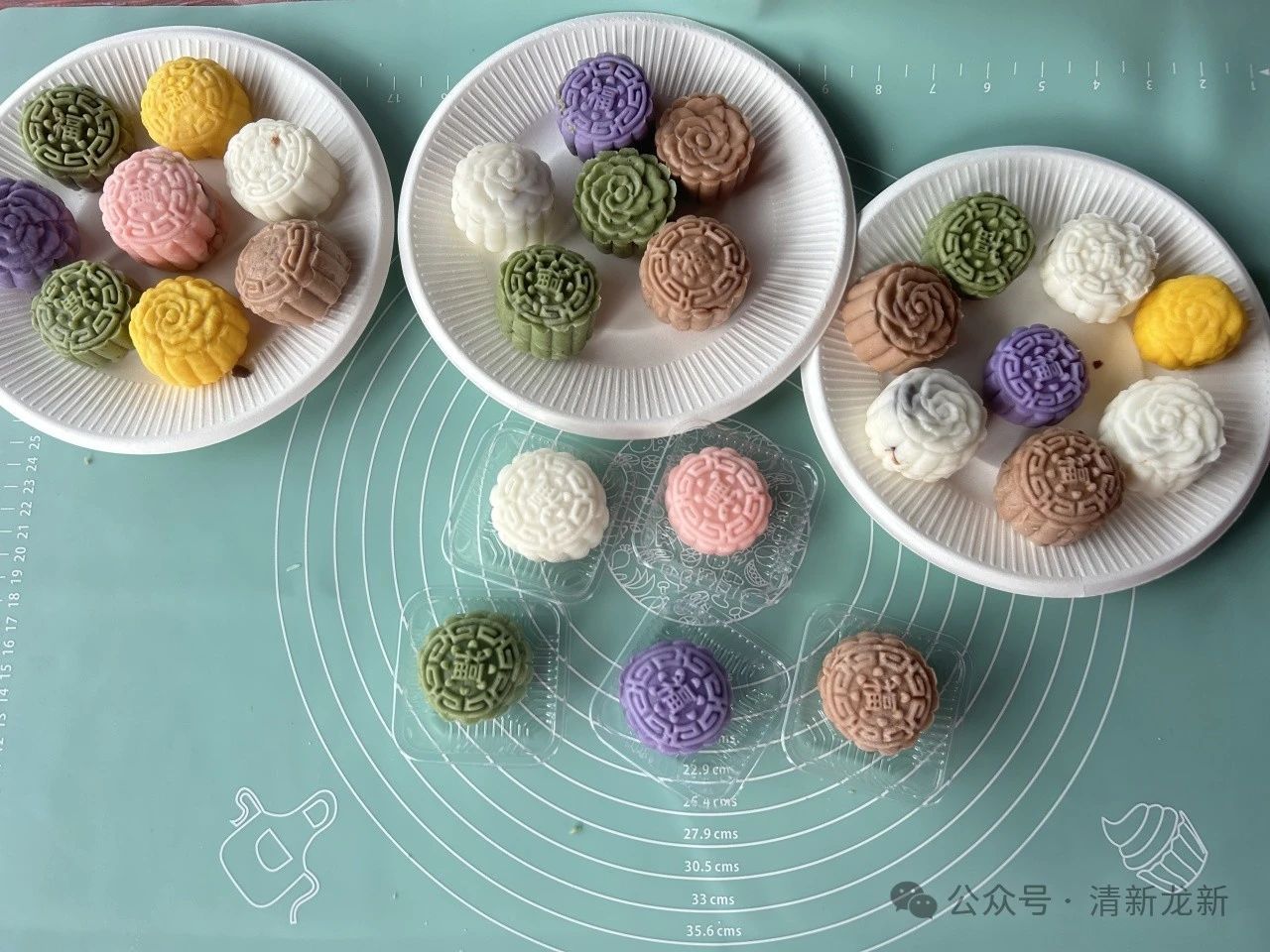 “八月十五月儿圆,中秋月饼香又甜”,中秋节,当然要吃月饼。在互动游戏过后,就是巧手制月饼环节。在社工的示范下,他们用提前准备好的材料和工具,制作冰皮月饼。包馅、揉团、压型,通过细心引导和鼓励,一个个独具特色的漂亮月饼呈现在大家眼前,五彩缤纷、小巧可爱,他们对自己的小“成果”都很满意,举着月饼快乐合影,满脸喜悦。