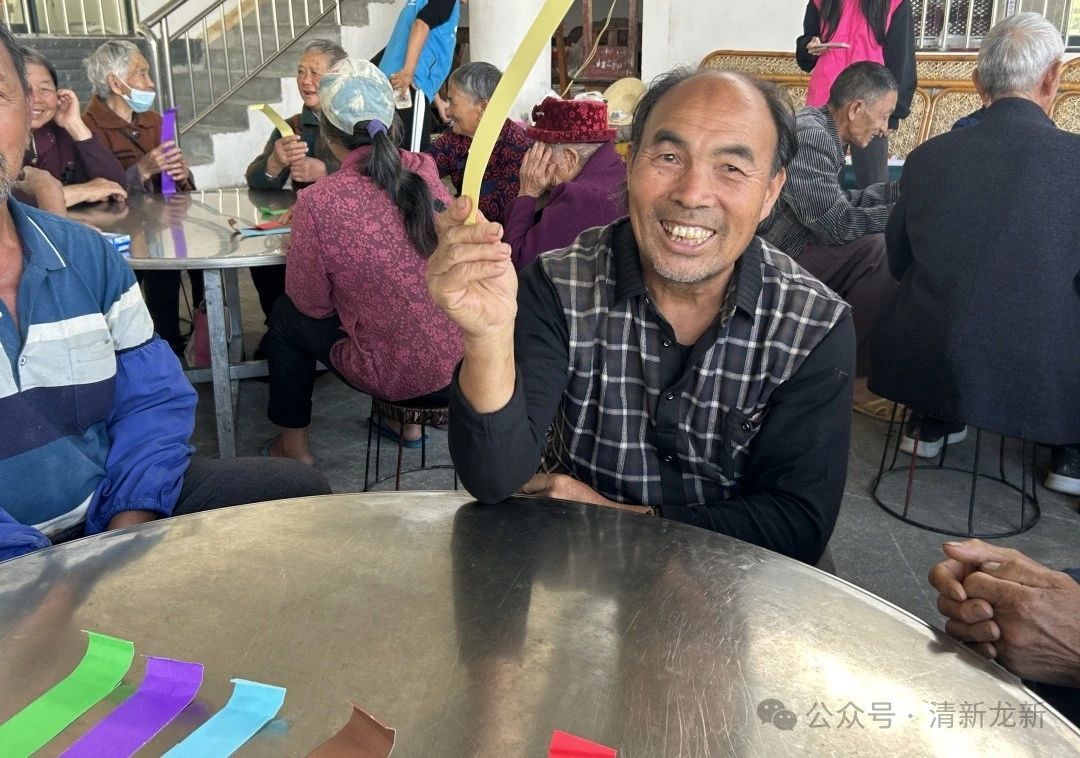 彩条纷飞里,阵阵是欢声。活动现场,工作人员为老人们讲述重阳习俗,提醒高血压、高血糖及心脑疾病患者在饮食方面需要注意的事项,引导老人一起做欢乐抢彩条游戏,在做完规定动作后,工作人员随机喊出红色、白色等颜色,老人们迅速在桌子上找到对应的彩色纸条,先抢到正确彩条者获胜。欢快又惊喜的氛围令老人们沉浸不已,源源不断传出掌声和笑声。