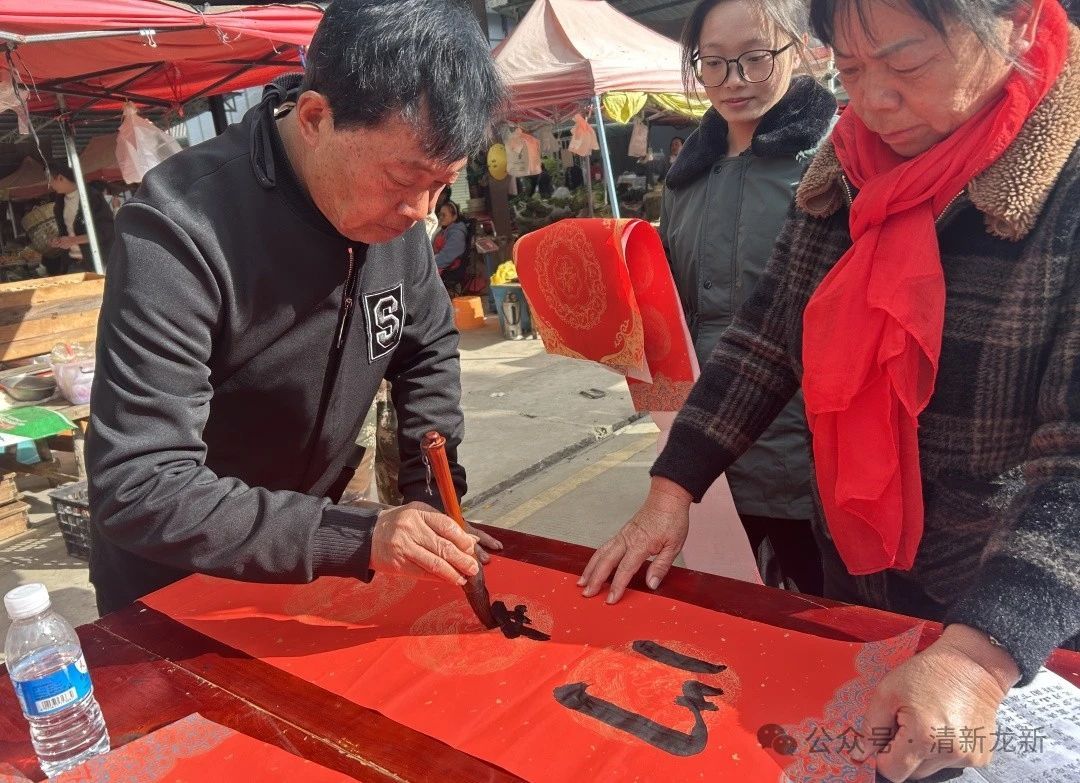活动现场,老干部们个个妙笔神功,全神贯注地为村民们书写着新春对联,一袭袭红纸上字字行云流水,寄托着对新年的满满祝福与关切。现场人头攒动,村民们也热情高涨,争先邀请老干部为自家书写春联,“人顺家和万事兴”“吉星高照福满堂”等句子,一个个充满吉祥寓意的“福”字,翰墨流芳里,浓浓的年味扑面而来。