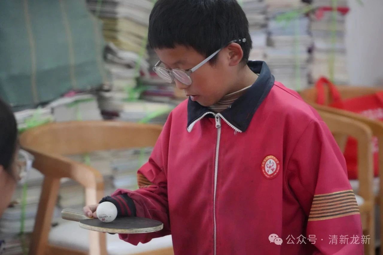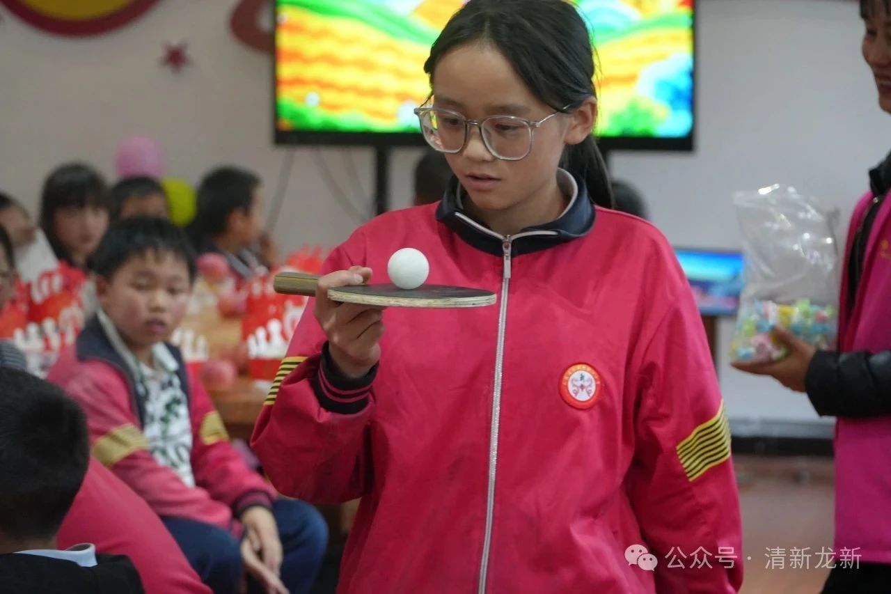 趣味游戏促互动,欢声笑语传温情。游园活动将现场氛围推向高潮,孩子们对游戏期待满满,跃跃欲试。“盲人击鼓”游戏中,孩子们蒙眼摸索击鼓,同伴的加油声此起彼伏;“掌上明珠”游戏中,孩子们屏息凝神,托着乒乓球稳步前行,紧张又逗趣的场面引得笑声连连。最受欢迎的是“弹乒乓球”挑战赛,大家为同学们精准的技术而鼓劲喝彩。孩子们在互动中感受团结,在陪伴中获得快乐。