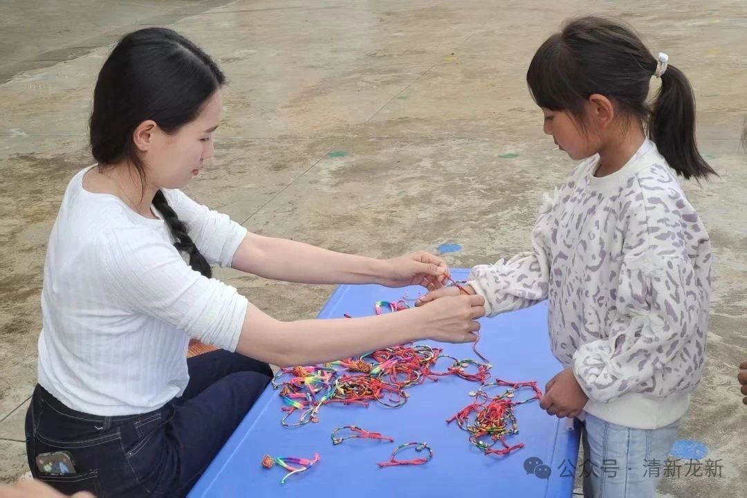 戴彩绳,五彩纳吉好运来。老师们提前准备好五彩斑斓的彩绳,活动中依次为幼儿系在手腕上。红、黄、蓝、绿、紫的彩绳在小手上轻轻缠绕,老师讲解着“彩福纳吉、好运常伴”的寓意,孩子们互相欣赏着对方的彩绳,欢快地挥舞着小手,五彩的绳结在阳光下闪烁,成为节日里一道亮丽的风景线。
