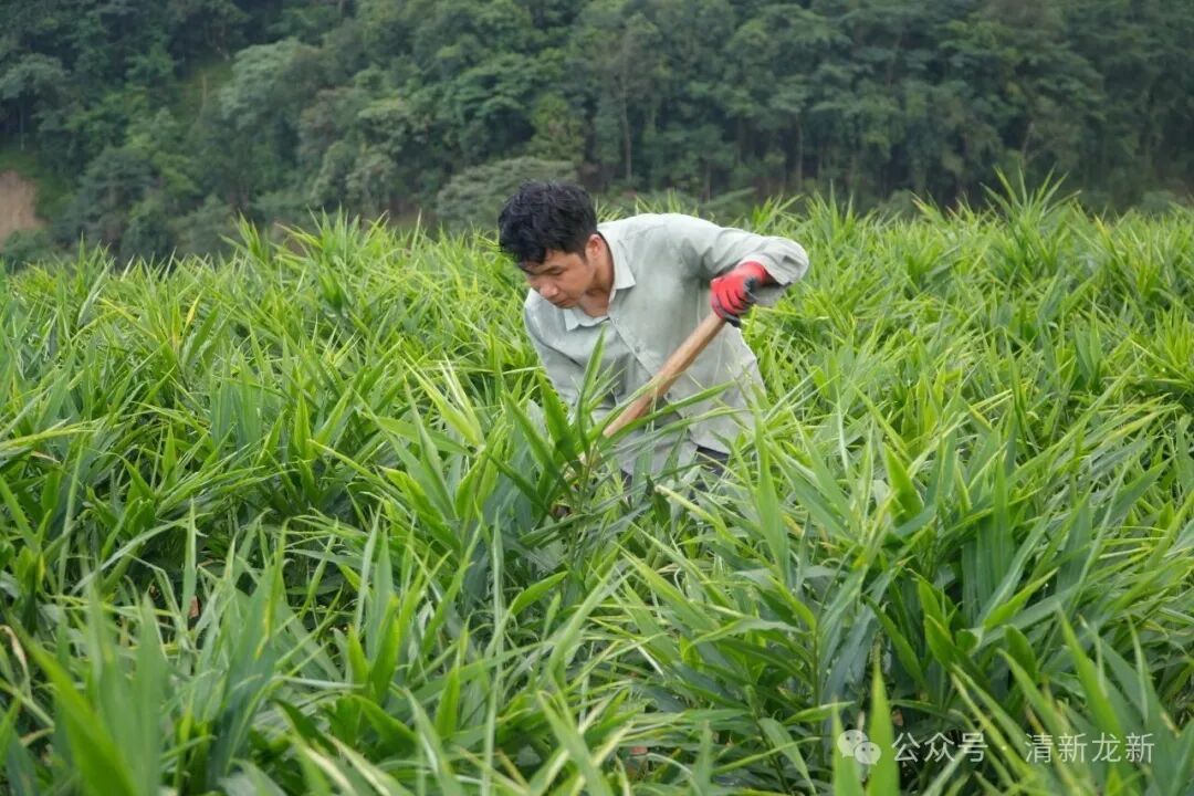 走进龙新乡蚌渺村生姜种植基地,连片的姜苗整齐排列,绿意盎然、长势喜人。李本旺和工友们正忙着培土除草,空气中弥漫着特有的清香。这片土地,正悄然孕育着村民们红火的好日子。