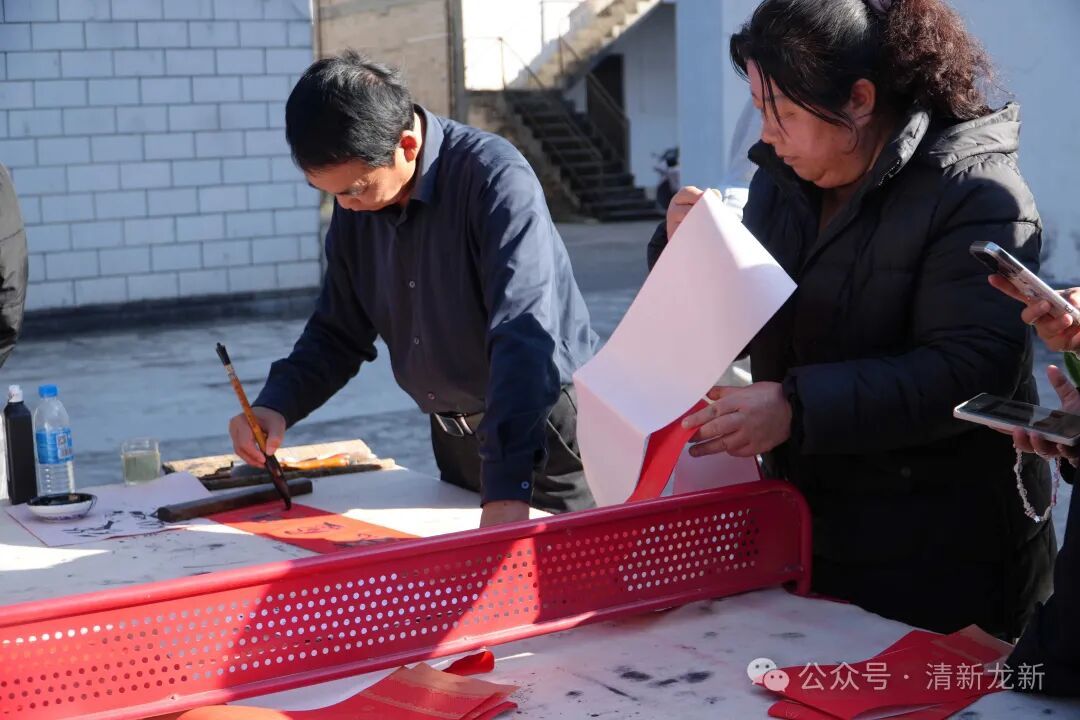 活动现场,红联铺展、墨香四溢。杨顺朝老师凝神聚气、挥毫泼墨,展纸、蘸墨、运笔一气呵成,“骏马奔腾迎盛世,春风浩荡展宏图”“岁岁平安家兴旺,年年有余福满堂”......一副副寓意吉祥的春联、一个个饱满厚重的“福”字跃然纸上,既饱含对丙午马年的期许,也承载着对龙新乡发展的美好祝愿。