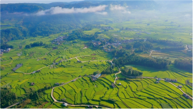 在龙江万亩梯田上,“稻田公园”是龙江乡今年着力打造的一个乡村振兴示范点,进一步推动全乡基本农田保护、粮食安全落实。公园里,饱经岁月洗礼的田房、“啪啪”作响的水响耙、农耕传承和五谷丰登造型、开满格桑花的田间“幸福路”、彩稻画“庆祝党的二十大”、鱼跃龙门等以“农耕文化”为主题的景点景观点缀着成片的稻田;远处是绿树翠竹环绕的弄岗寨,白鹭纷飞、炊烟袅袅,寨子里有民宿、农家乐等,吃住行娱购功能逐步完善。这些景观和当地田园风光融合在一起,满满都是诗情画意。