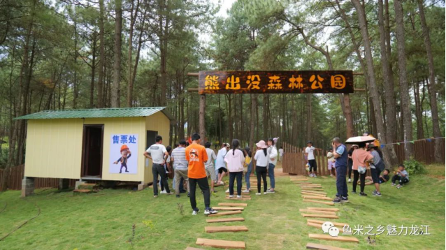 龙江乡弄福村熊出没森林公园,国庆七天集中推出寻找光头强、跑跑卡丁车、高空探险、行走的秋千等趣味游乐项目,熊出没森林公园从9月30日至10月7日试营业期间累计入园人次11500人次;车流量2800辆次;丛林穿越项目体验793人次;共计收入57228元;带动周边群众水果、冷饮、小吃、稻花鱼、儿童游乐项目32个摊位,共计毛收入91500元。