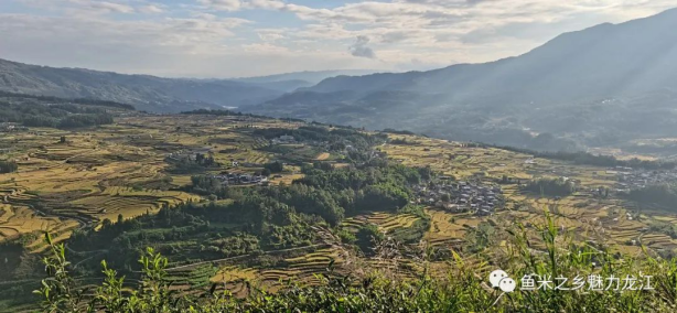 龙江“万亩梯田”的稻子,在不知觉间已悄悄的变幻,万亩水稻成熟,金黄的稻浪摇荡在层层叠叠的梯田中,镶嵌在崇山峻岭之间,构成一幅绝美田园丰收图画。