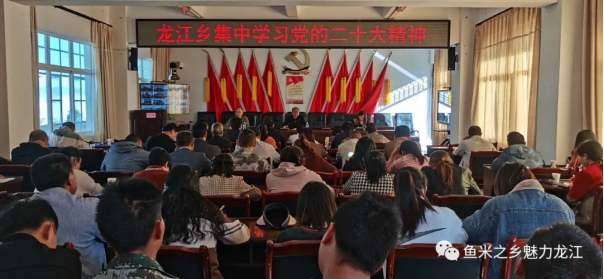 为深入贯彻《中共中央关于认真学习宣传贯彻党的二十大精神的决定》,扎实推进学习宣传贯彻党的二十大精神,切实把全乡广大党员干部群众的思想统一到党的二十大精神上来,把力量凝聚到党的二十大确定的各项任务上来,近日,龙江乡传达学习党的二十大、二十届一中全会和市、县领导干部会议精神,研究部署学习宣传贯彻落实工作。龙江乡乡村两级工作人员共计200余人参加此次会议。