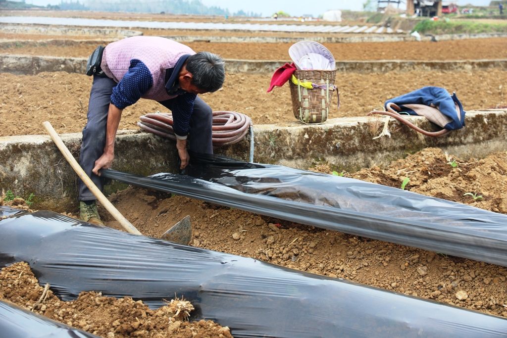 烟农全家出动,浇水、栽苗、覆膜……一道道工序有条不紊地进行,掀起新一年的烟叶生产热潮。