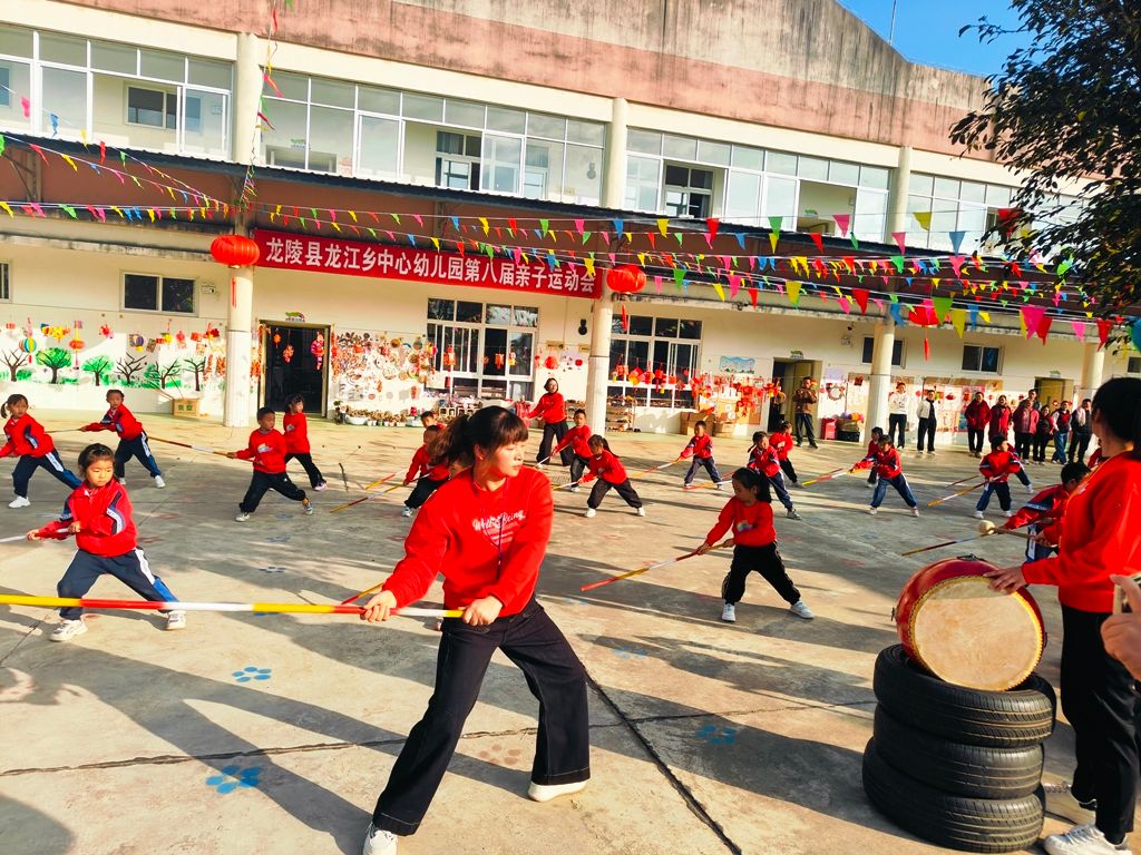 为了激发学生和家长参与花棍表演的热情,在龙江乡中心幼儿园举办的第八届亲子运动会上,大班的孩子们和他们的老师共同呈现了一场精彩绝伦、气势磅礴的傣族花棍表演,赢得了在场家长、老师和学生们的阵阵喝彩。