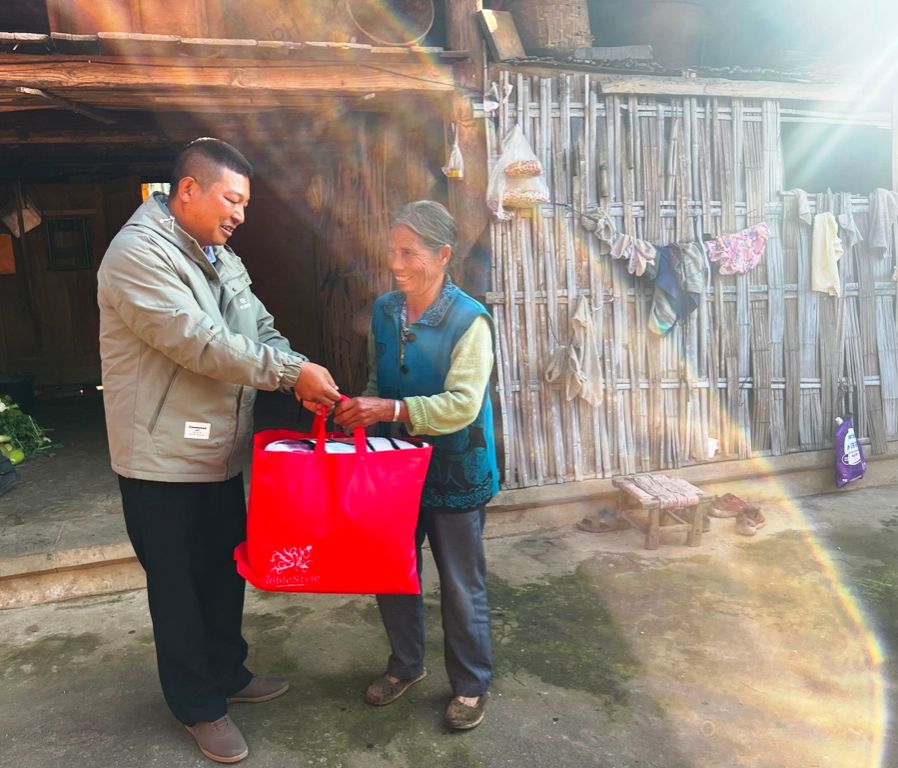 在这次活动中,赧等村向23位老人赠送了温暖的毛毯和诚挚的祝福,不仅为他们带来了温暖,还提升了他们的幸福感和安全感。老人们脸上洋溢着快乐的笑容,他们感激地竖起大拇指,称赞道:“真正好啊!”