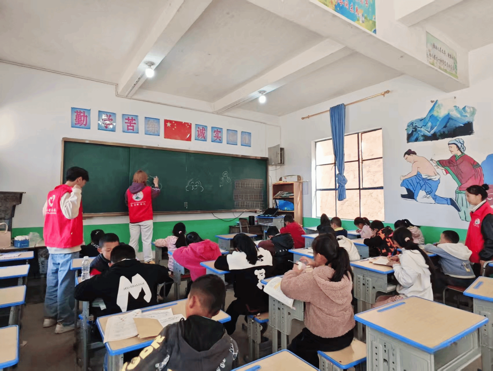 实践活动中,志愿者们通过“火山喷发”“磁铁探秘”科学小实验激发孩子们对科学的兴趣,以趣味运动会、太极拳教学、接力赛等活动增强体质、培养团队精神。创意手工课上,小学生利用废旧塑料瓶、旧报纸等制作工艺品,既提升动手能力,也强化了环保意识。此外,心理健康讲座和普法课堂进一步关注学生身心成长,助力其全面发展。活动期间,校园内洋溢着欢声笑语,志愿者与孩子们在互动中建立了深厚情谊。