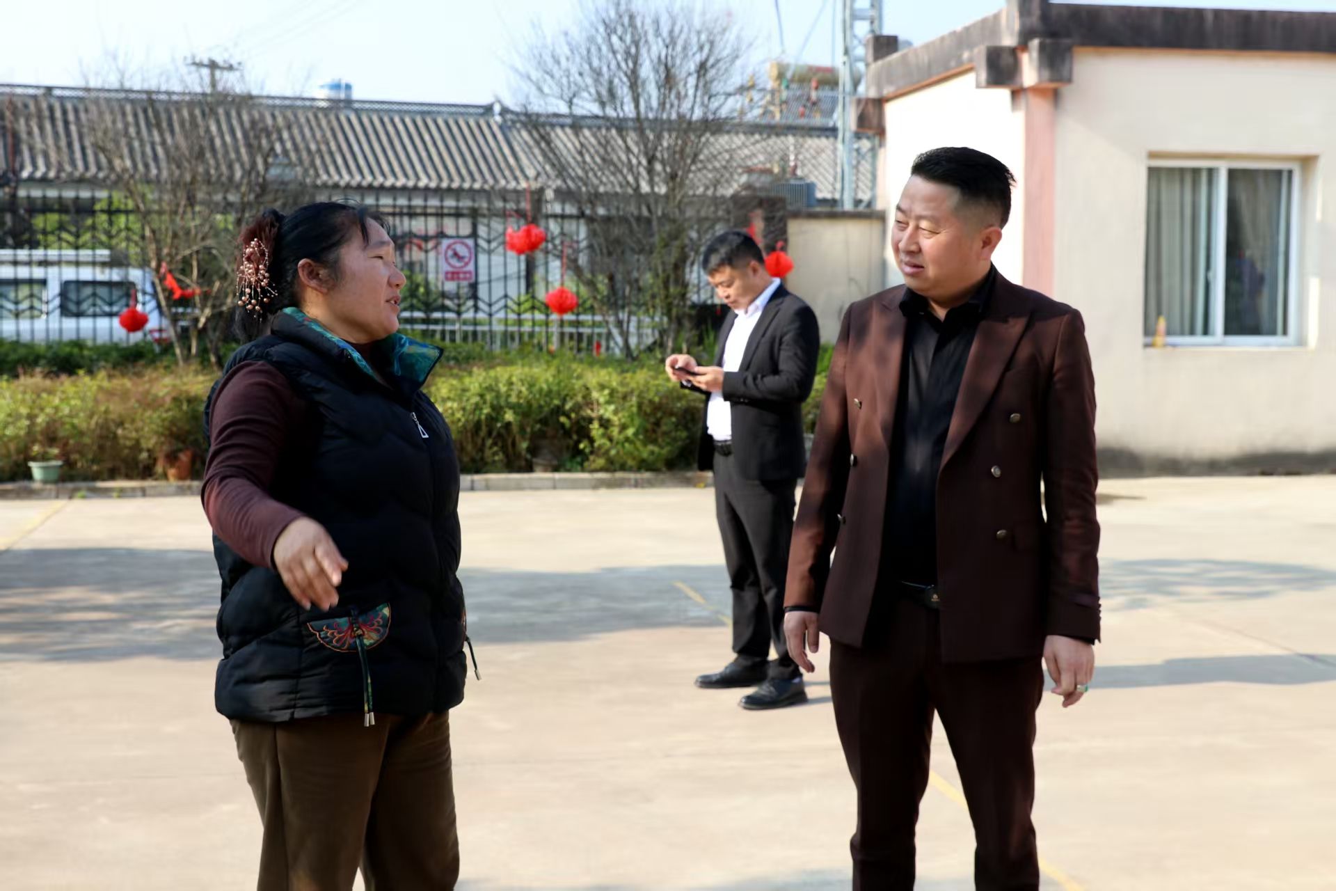 德宏金旺公司创立于2001年,位于美丽的孔雀之乡的州府芒市,在总经理张有参先生和法人陈凤琴女士的正确领导下,公司已有80多名员工,分公司有7个,遍布全州及龙陵,是一家以汽车销售、汽车维修、保险理赔、肇事修复、工程建设、道路运输为一体的综合型民营企业。总经理张有参听说张大泽的悲惨遭遇后,带领着公司的工作人员来到敬老院探望。他们给敬老院带来了崭新的桌椅、沙发、藤椅、衣服,还特意给张大泽单独购买四套衣服,并给了一个红包。