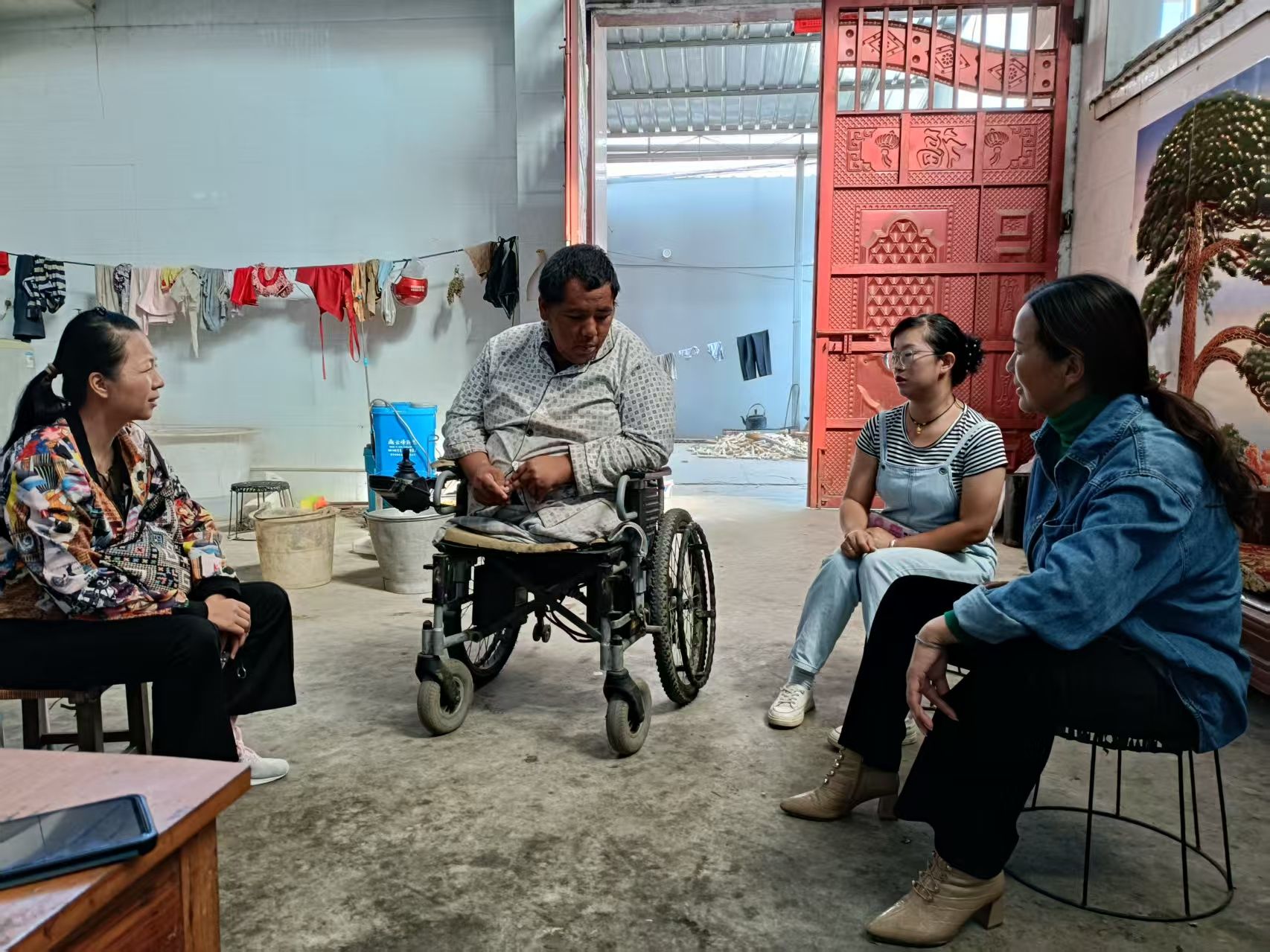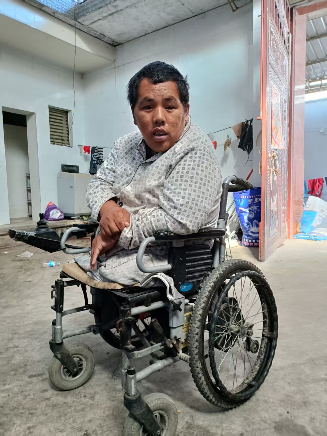 2022年,我被派驻新寨村作为该村驻村第一书记。这时的张大泽已经遭遇了不幸,我再一次看到他的时候,他的双腿已经从臀部以下被截肢。跟他说话,他也是有一搭没一搭的,整个人看着非常颓废。那一刻,我在心底暗暗发誓,一定要为他做点什么,帮助他走出这片黑暗。