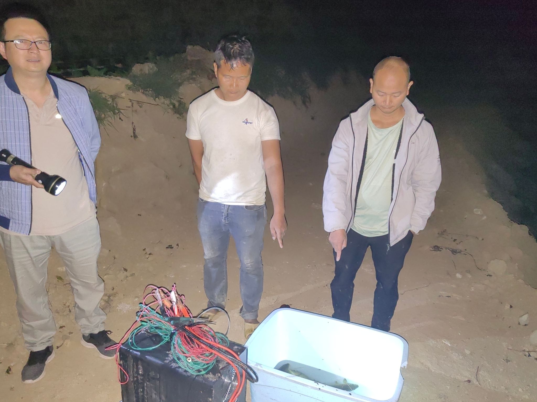 3月16日晚八点半,龙江乡人民政府接到群众举报称,在龙川江龙江乡新寨村蒿子坝段有人进行非法电鱼。