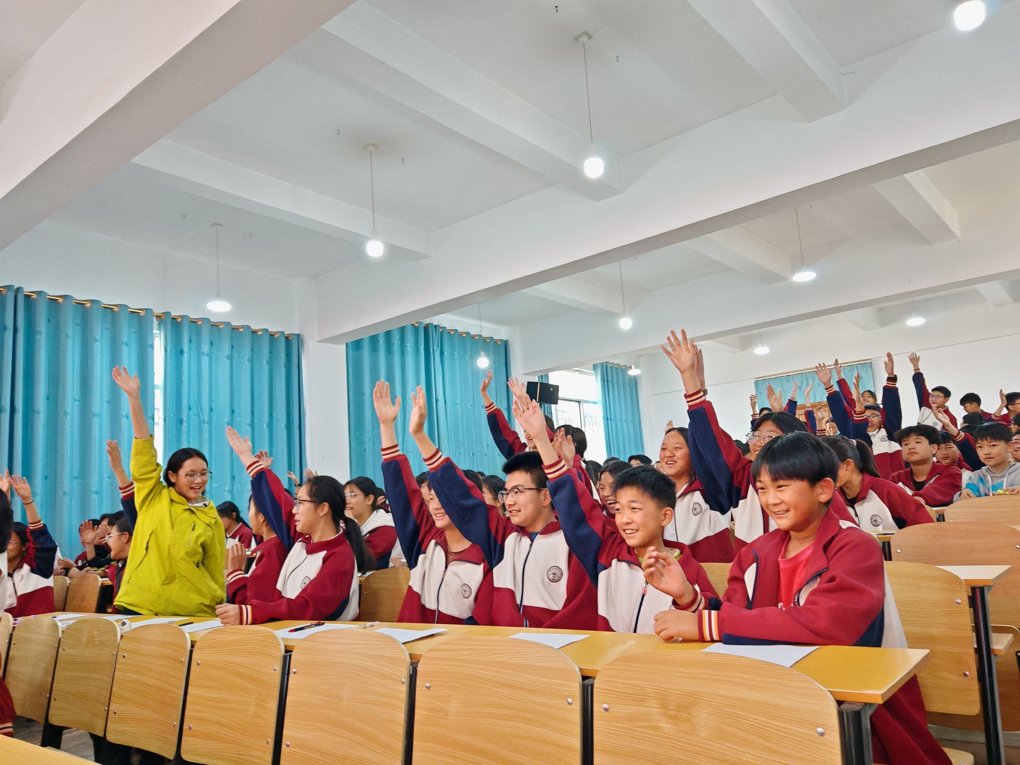 题为《一堂好玩的心理交流课》专场活动在勐柳中学同步开展,共有150余名七年级学生参与其中。培训活动以“认识自我、悦纳自我”为主线,通过“互动游戏破冰—小组讨论共情—‘剥洋葱’式自我剖析”三大模块,打造沉浸式心理课堂。姚老师巧妙设计趣味活动环节,引导学生直面青春期身心变化、人际压力等现实问题,并借助“剥洋葱”法层层解析,帮助学生厘清内心需求,建立积极认知。活动现场,学生从拘谨到敞开心扉,在欢声笑语中喊出“我爱独一无二的自己”,展现出心理教育的温度与深度。