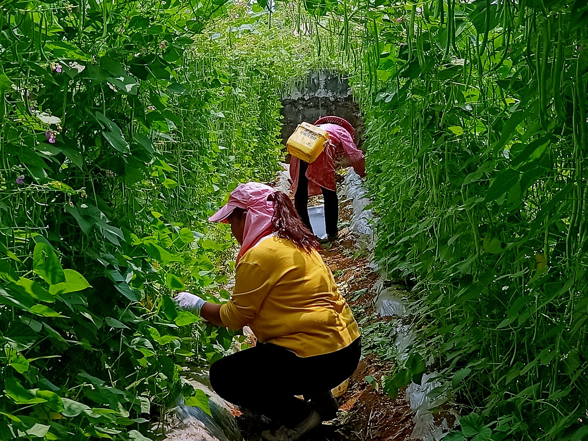 时下,龙江乡弄岗村的田间地头热闹非凡,被当地农户称作“小筋豆”的四季豆迎来丰收。放眼望去,一片片豆田绿意盎然,一排排整齐的豆架上挂满了饱满翠绿的小筋豆 ,在阳光的照耀下闪烁着诱人的光泽。村民们穿梭在田间地头,忙着采摘、打包、装车,脸上洋溢着丰收的喜悦,一派繁忙景象。