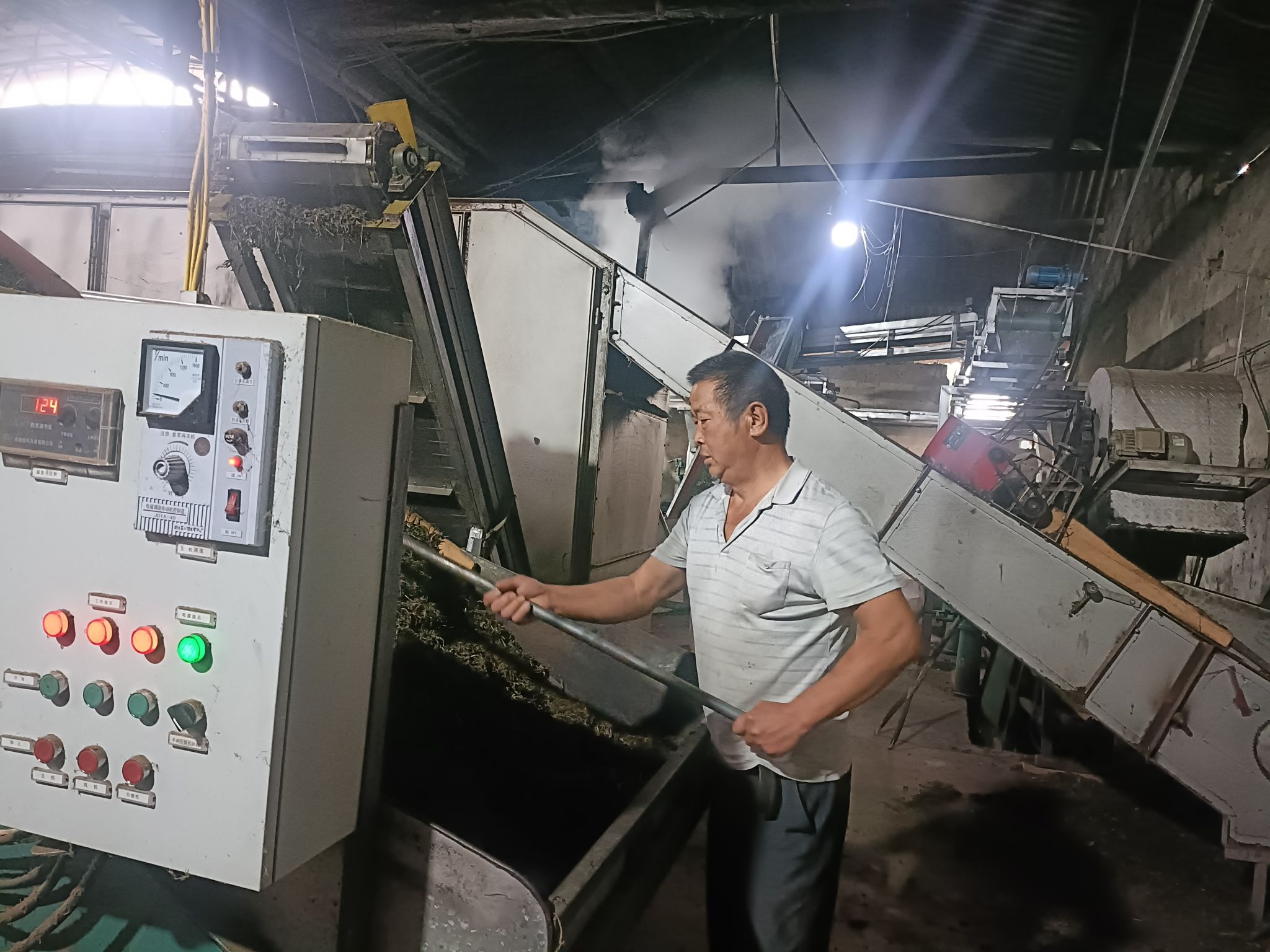 走进良缘茶厂,1台杀青机、7台揉茶机、2台烘干机同时开动,茶香弥漫中只见工人们忙碌的身影,有的正忙着摊晾、有的正往机器上添加鲜叶、有的正忙着搬运干茶发往外地。郭玉学既当老板,又当工人,他一边摊晾茶叶,一边自豪地说:“我们茶厂虽然规模不大,但每年支付给茶农的鲜茶费用达80余万元。”、