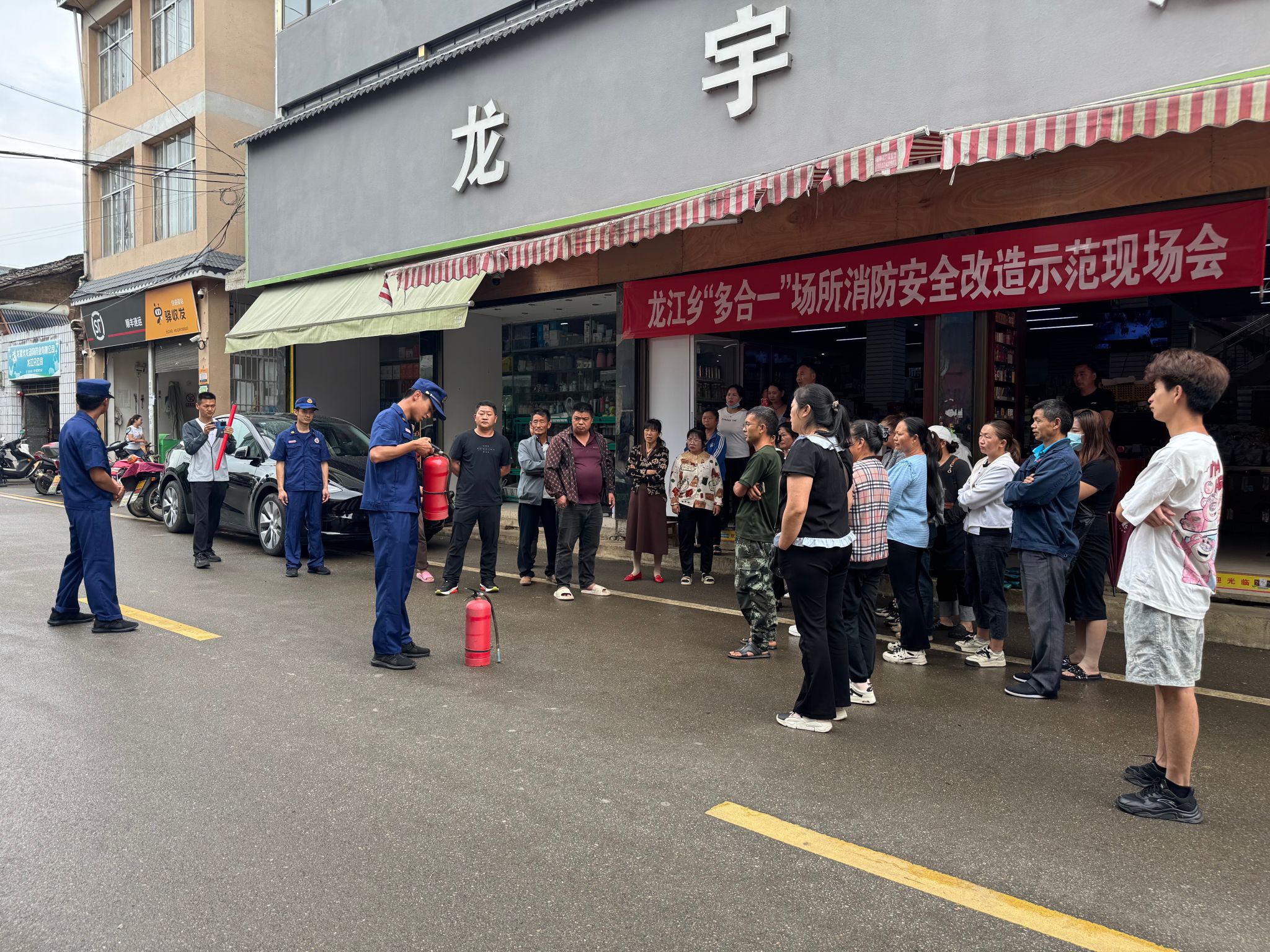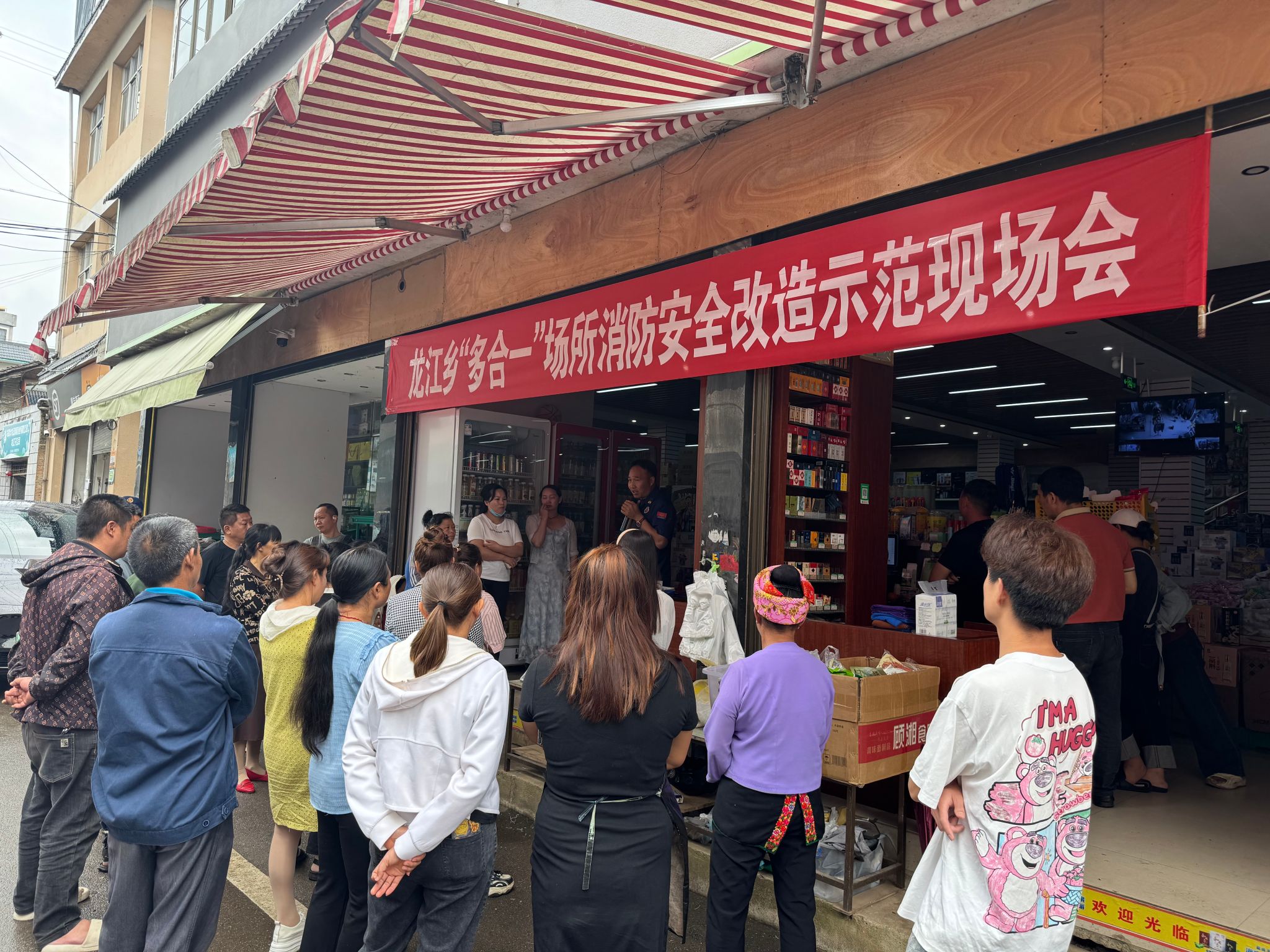 为深刻汲取近期火灾事故教训,确保辖区内“多合一”场所消防安全,龙江乡消防工作站及时排查当前存在消防安全隐患,于近日在龙江乡龙宇超市门口召开消防安全改造示范现场会。乡镇“一队一站”、各村代表、部分商户负责人参加此次现场会。