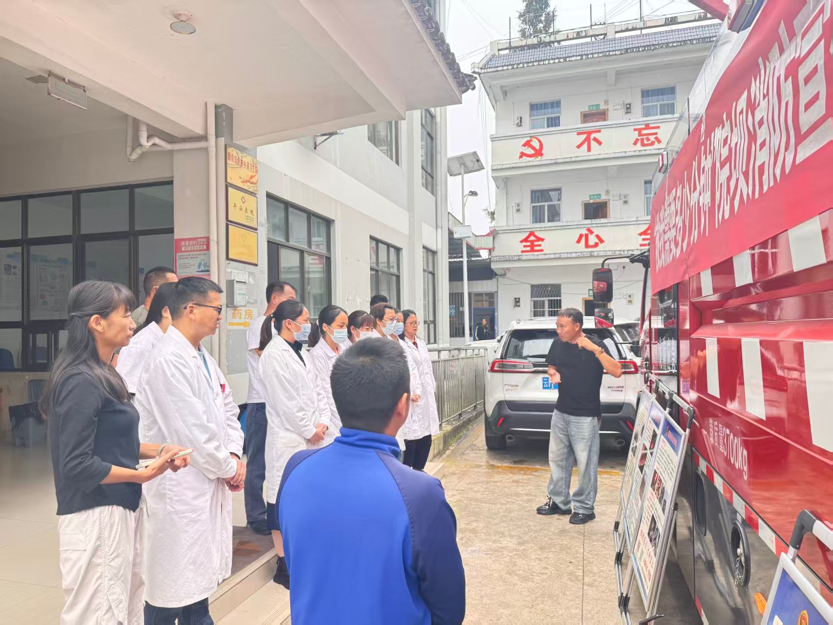 针对医院人员密集、病患行动不便、易燃易爆物品较多等特点,消防宣传人员以 “院坝座谈会 + 现场实操” 的形式开展宣传。在医院楼下,宣传人员结合近期医院火灾案例,向医护人员、患者及家属讲解了医院火灾的危险性、初期火灾扑救方法、疏散逃生技巧等知识。随后,宣传人员现场演示了灭火器的 “提、拔、握、压” 使用步骤,并组织医护人员和安保人员进行实操演练,让大家在亲身体验中掌握灭火技能,切实守护医患生命财产安全。