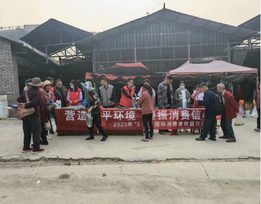“3·15”国际消费者权益日主题宣传。此次活动以“营造公平环境,提振消费信心”为主题,工作人员正在向消费者宣传、讲解辨别假冒伪劣产品、食品安全等知识,同时针对老年人重点讲解老年消费欺诈和食品安全消费问题,为村民讲解买到假冒、过期产品如何应对以及遭遇消费欺诈如何拿起法律武器保护自己,引导消费者科学合理消费、依法维权。据悉,本次活动共向群众发放《中华人民共和国消费者权益保护法》《侵害消费者权益行为处罚办法》等宣传材料和消费提示材料100余份,现场接受群众咨询50余人次。