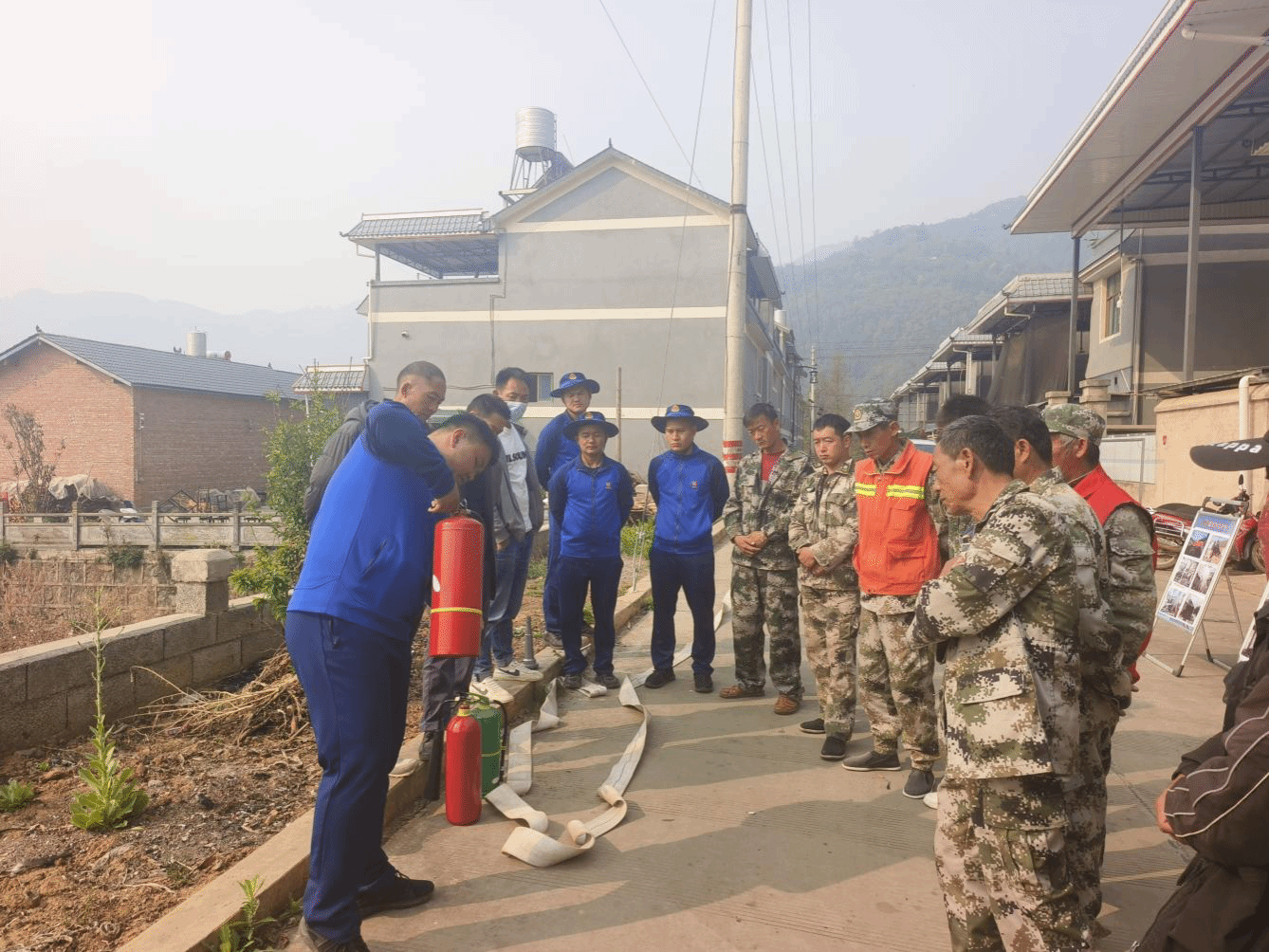 灭火技能培训:手把手教学,练就实战本领。在旧寨坡搬迁点,消防队员围绕农村常见火灾隐患及扑救方法,分模块开展灭火技能培训。分别开展了移动抽水泵操作:从启动设备、水源选择到抽水灭火全流程演示,重点讲解操作要点和常见故障排除方法。灭火器使用方法:通过“提、拔、握、压”四字口诀,指导村民针对油锅、电器等不同火源选择适用的灭火器类型。消火栓与水带水枪配合:演示快速连接水带、铺设水带路线及水枪射水技巧,组织村民分组进行接力实操,提升团队协作能力。