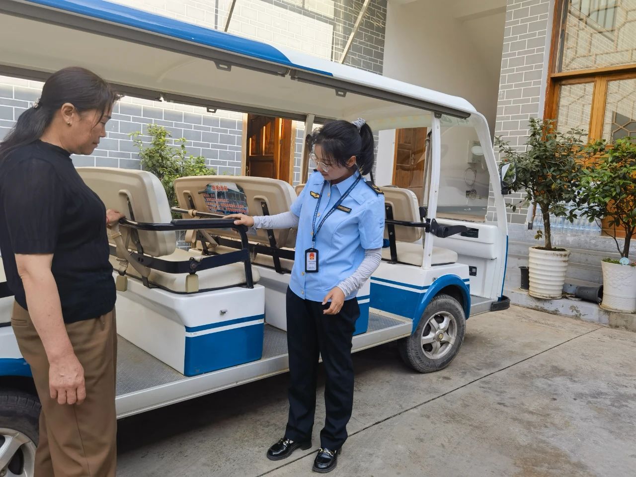 排查特种设备隐患,严防“带病”运行。重点对建帮旅游有限公司经营的9辆观光车辆进行检查,详细查看设备运行记录、维护保养情况、作业人员持证上岗等内容,现场测试制动性能、灯光系统、安全带等安全装置。要求运营单位落实每日出车前安全自查,严禁超员、超速行驶。