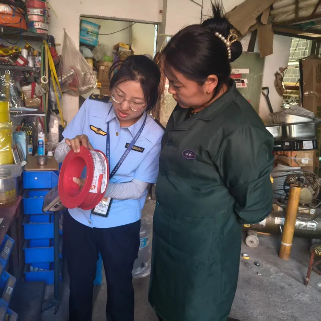 执法人员聚焦五金店、建材商行、电器商铺、超市等可能销售电缆电线的场所开展"拉网式"检查,一是重点检查经营主体的资质是否齐全,是否存在无照经营情况,摸清电线电缆经营主体底数;二是重点查看产品是否符合质量安全标准,强制认证标志、检验合格证明是否齐全,是否存在无厂名厂址、无强制认证等违法行为;三是重点查看经营主体进货渠道是否正规、是否建立进货查验制度,督促经营主体切实履行产品质量主体责任;四是加大《产品质量法》、电线电缆产品知识的宣传,提高经营主体电线电缆产品质量安全的认识,督促经营主体购销质量过关的产品。