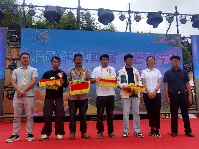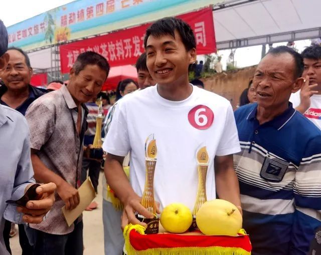 在备受瞩目的“芒果王”评选现场,报名参赛的果农们带着自家种植的象牙、凯特、圣德龙、金煌芒、小奥5个芒果品种接受大众评委的评判。评委们现场分别评比出个头、重量、品相等最优的“芒果王”,并颁发奖杯。