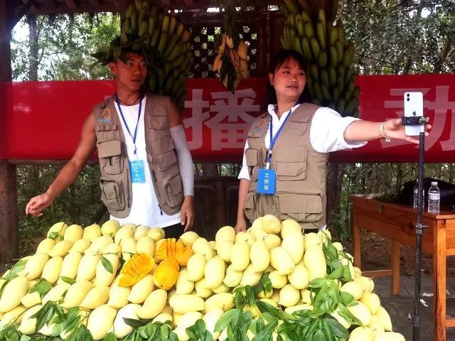直播到货让腊勐芒果走向全国“直播间的宝子们,大家好,主播现在是在龙陵县腊勐镇芒果节的现场,这些芒果是昨晚刚摘回来的,很新鲜。”在“人气王”“带货王”比赛现场,直播团队现场带货当地的芒果、咖啡、香蕉等农特产品。电商从业者们面对镜头,熟练地展示着不同品种的芒果:“家人们看过来!这是腊勐的鹰嘴芒,肉厚核薄、香气浓郁,咬一口满嘴都是甜蜜!”