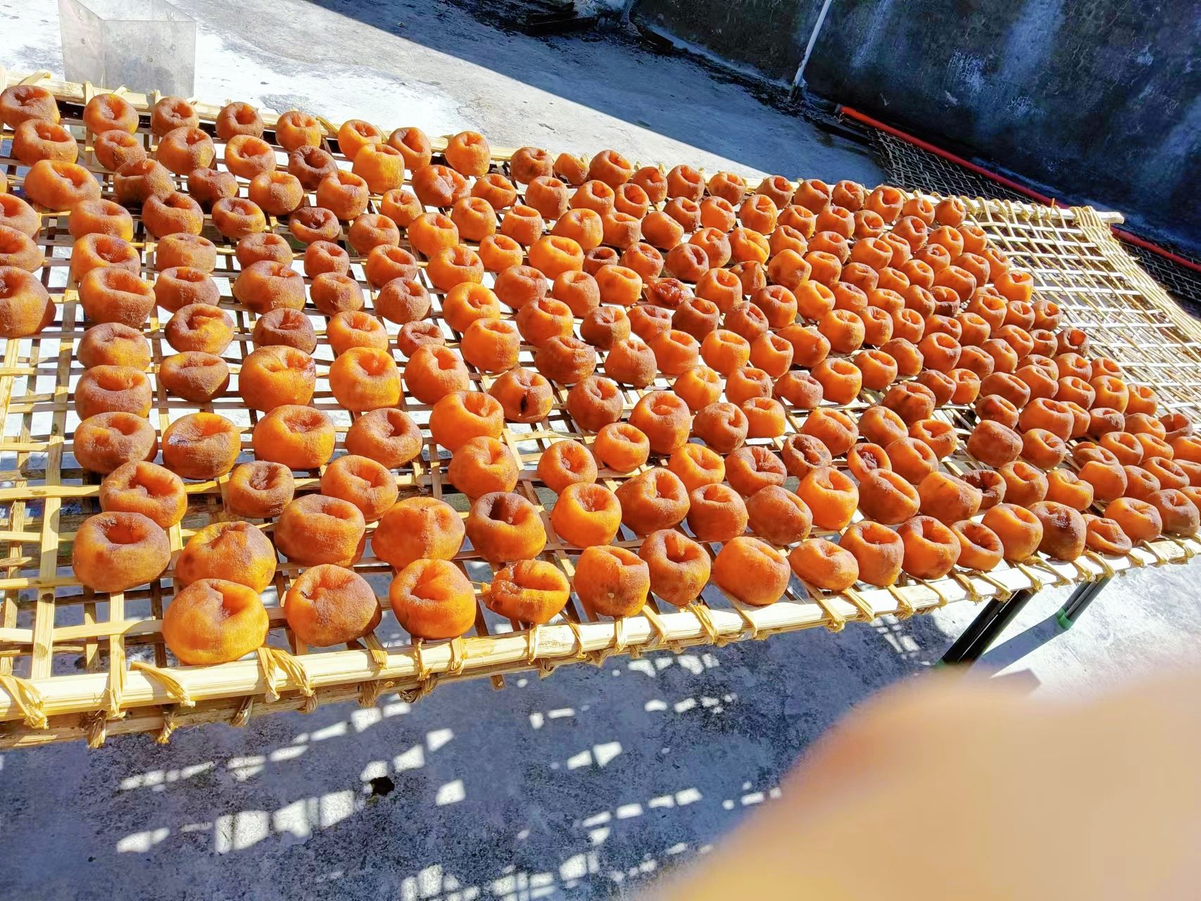 松山村光照充足、气温适宜、土壤肥沃,独特的自然条件造就了甜柿果实硕大、色泽鲜艳、口感细腻的优良品质。这里的甜柿摘下即可直接食用,果肉松脆鲜甜、汁水充盈;也可制作成柿饼,经过阳光的洗礼和时间的沉淀,柿饼的风味更加浓郁独特,成为了备受消费者喜爱的特色美味。如今,全村甜柿种植已达2000多棵,年产量约200吨,产值超600万元,昔日闲置的“四旁四地”变成了盛产甜蜜的“聚宝盆”。对于村民而言,甜柿带来的是真金白银的增收。村民李大爷表示:“今年甜柿树挂果率喜人,除自食和馈赠亲友外,剩余果实以每公斤3元的价格销往市场,每年能增收6000元左右。”这种“家门口的产业”,也让更多人主动加入到甜柿种植的行列中。