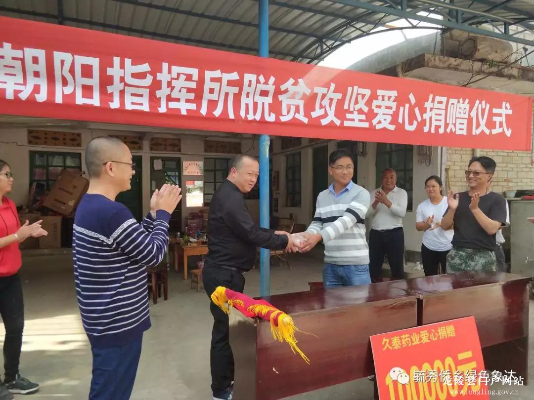 随后,在朝阳社区举行了简短的捐赠仪式,久泰药业捐赠爱心资金10万元整,以实际行动助力脱贫攻坚。