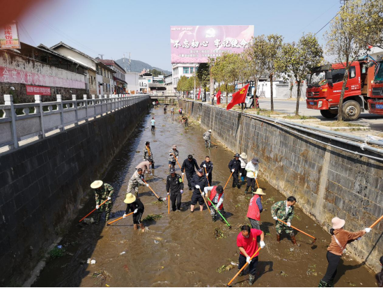 同志们有说有笑,既清理了河道,又拉近了干部职工、村干部、党员的感情,形成一股合力,建起一座堡垒。