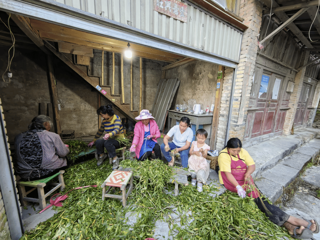 进入石斛鲜草收割季的象达变得更加鲜活起来。种植户和务工村民们聚集在田边、村口、活动场所等地,谈笑风生间有条不紊将收割的鲜条除叶、分拣、装绑好。“从前割草喂猪,赚不到钱,后来大伙儿种植石斛,小额信贷帮助我们减轻成本负担,现在每年很有盼头呢。”务工的杨大妈一边捆着石斛一边说。