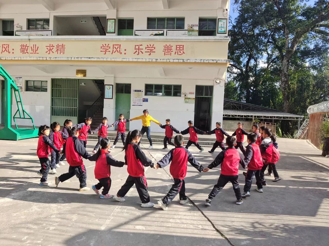 为增强学生体质,加强民族特色教育,学校坚持“国家理念+本土文化”的培养理念,利用大课间活动时间,开展了民族“打跳”活动。