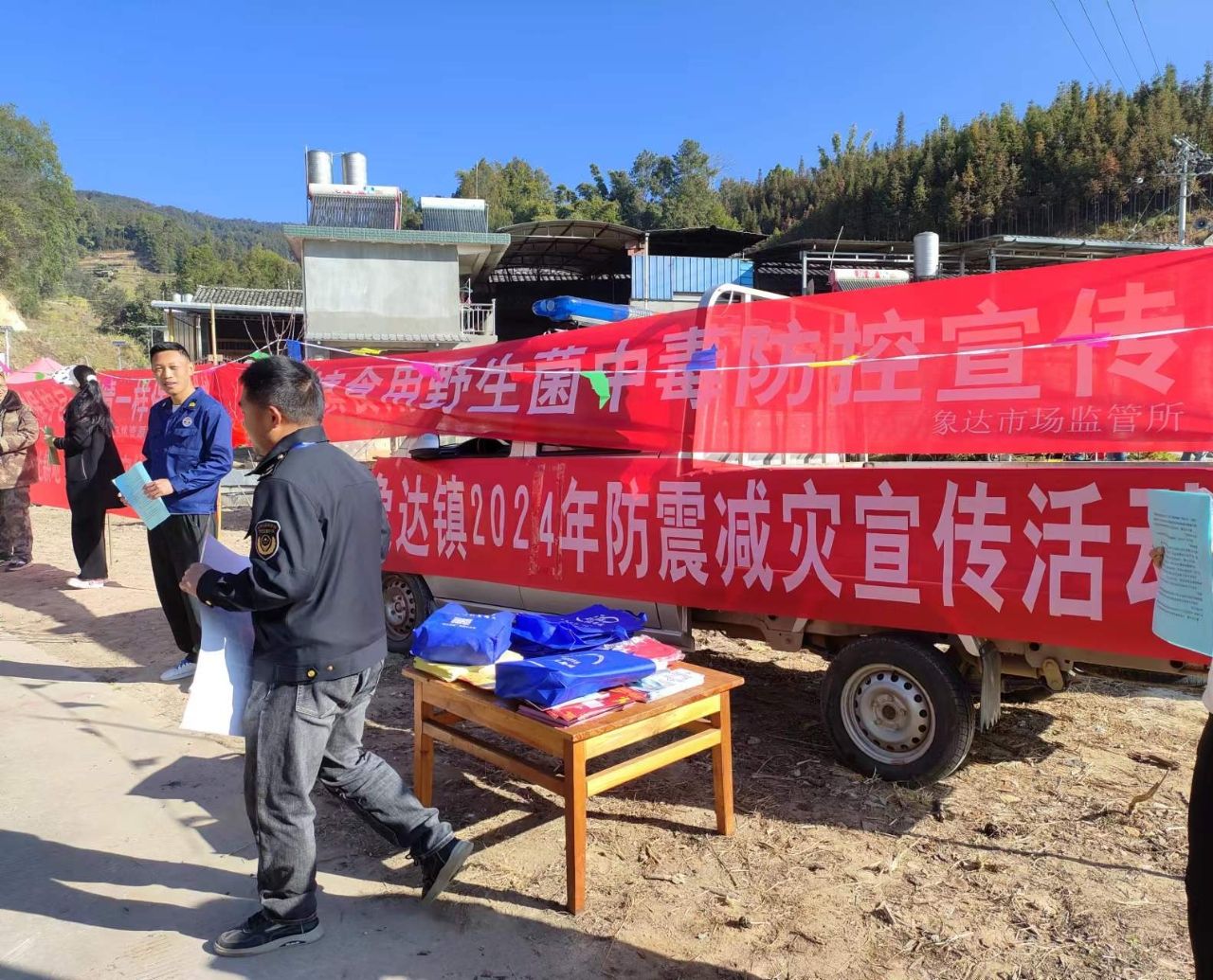 为拓展群众防震减灾、食品安全、消防安全、森林防灭火宣传等应急知识,切实提升居民防灾减灾意识和应对突发情况的应急能力,2024年1月22日象达镇大场村新街开街当天,象达镇综合执法队联合自然资源管理所、林业服务中心、市场监督管理所开展了“防震减灾、食品安全、消防安全、森林防灭火知识宣传”系列宣传教育活动。